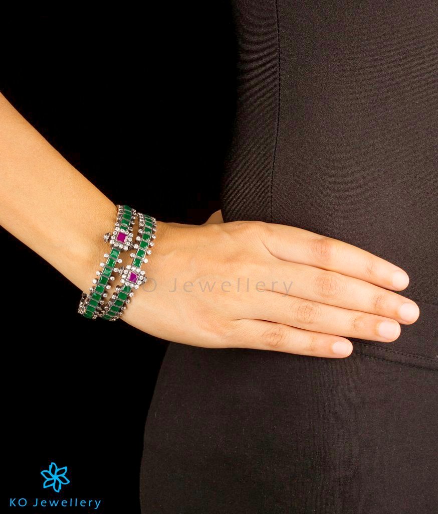 The Shreeja Silver Kemp Bracelet (Green/Oxidised/Size 2.2/2.4/2.6/2.8)