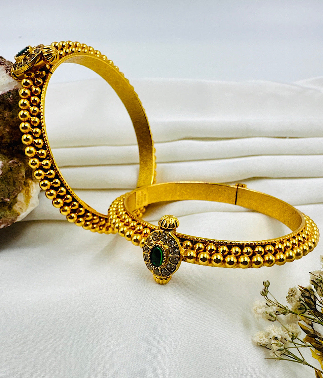 The Trisha Silver Zirconia Openable Kada Bracelet (White/Green/Size 2.2/2.4/2.8)