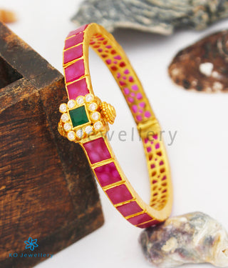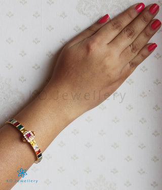 The Chayla Silver Kada Bracelet (Red/Green)