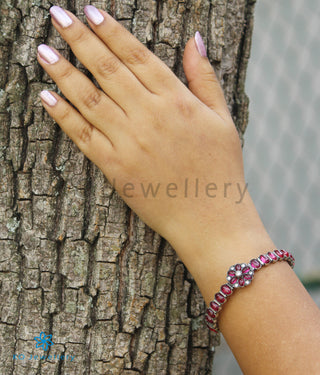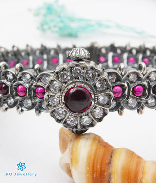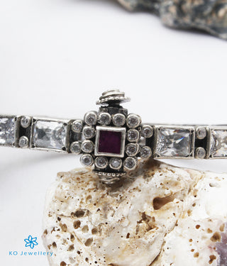 The Akriti Silver Kemp Bracelet (Red/Oxidised/Size/2.2/2.4/2.6/2.8 )