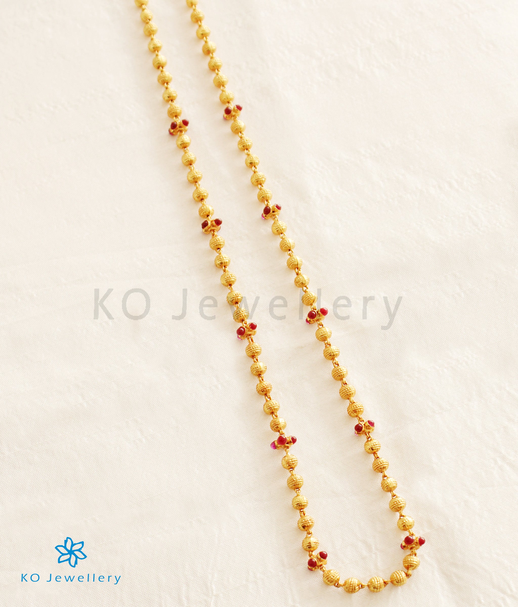 This chain made up of gold-dipped, Sterling Silver (92.5%) beads called Mohanmale which is a traditional centuries old ornament worn by women in south India.The beads have a unique floral design and are handwoven in silver wire and dipped in 24 karat gold.