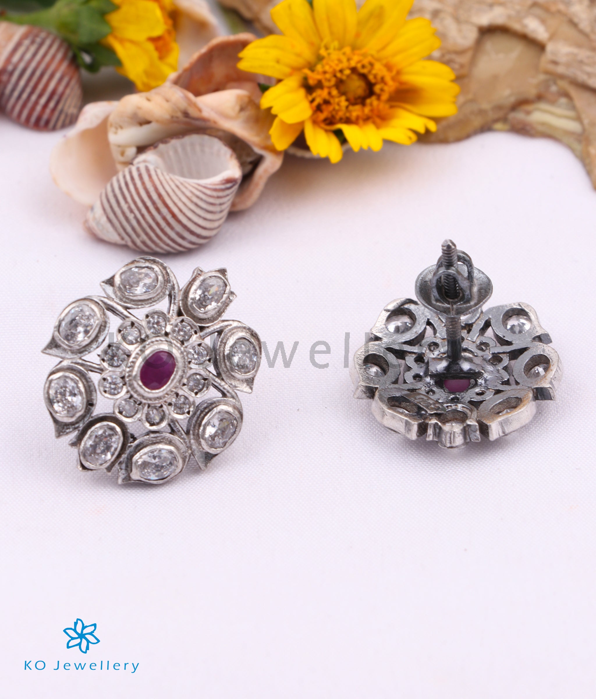 The Abhijita Silver Navratna Ear-studs (White/Oxidised)