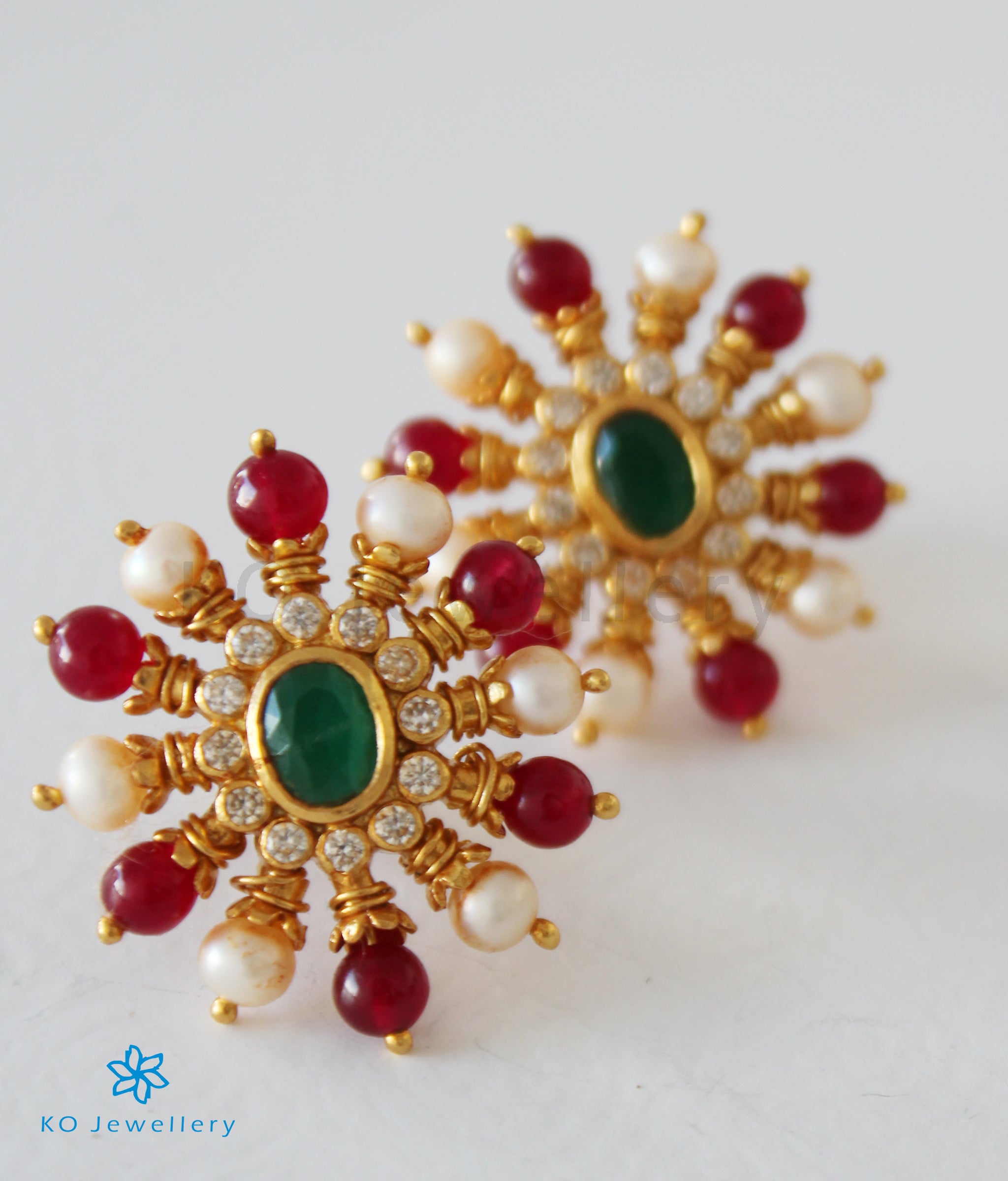 Gemstones used: kempu stone (also known as spinel or Zircon), AAA+ Quality Cubic Zirconia, natural cultured Pearl, red Onyx beads.