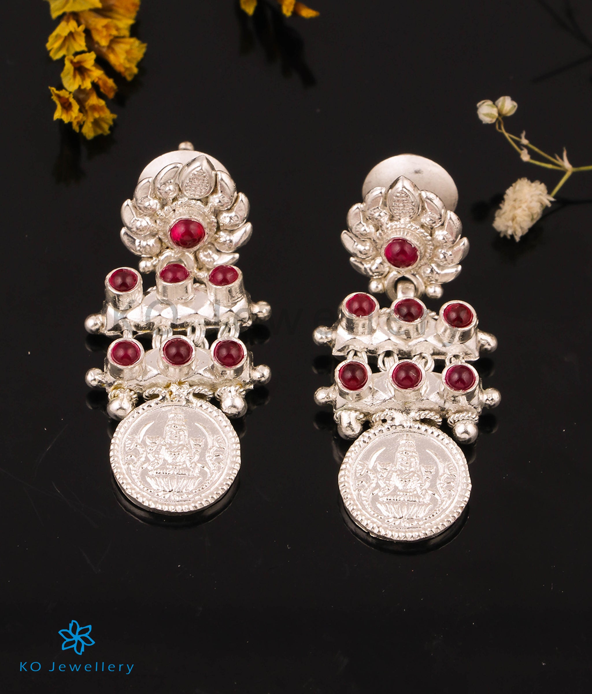 An iconic design, this traditional earring with the image of goddess Lakshmi is crafted using techniques used in South Indian antique jewellery in Sterling Silver (92.5) . This piece is also available in the antique oxidised silver-finish and gold dipped finish.