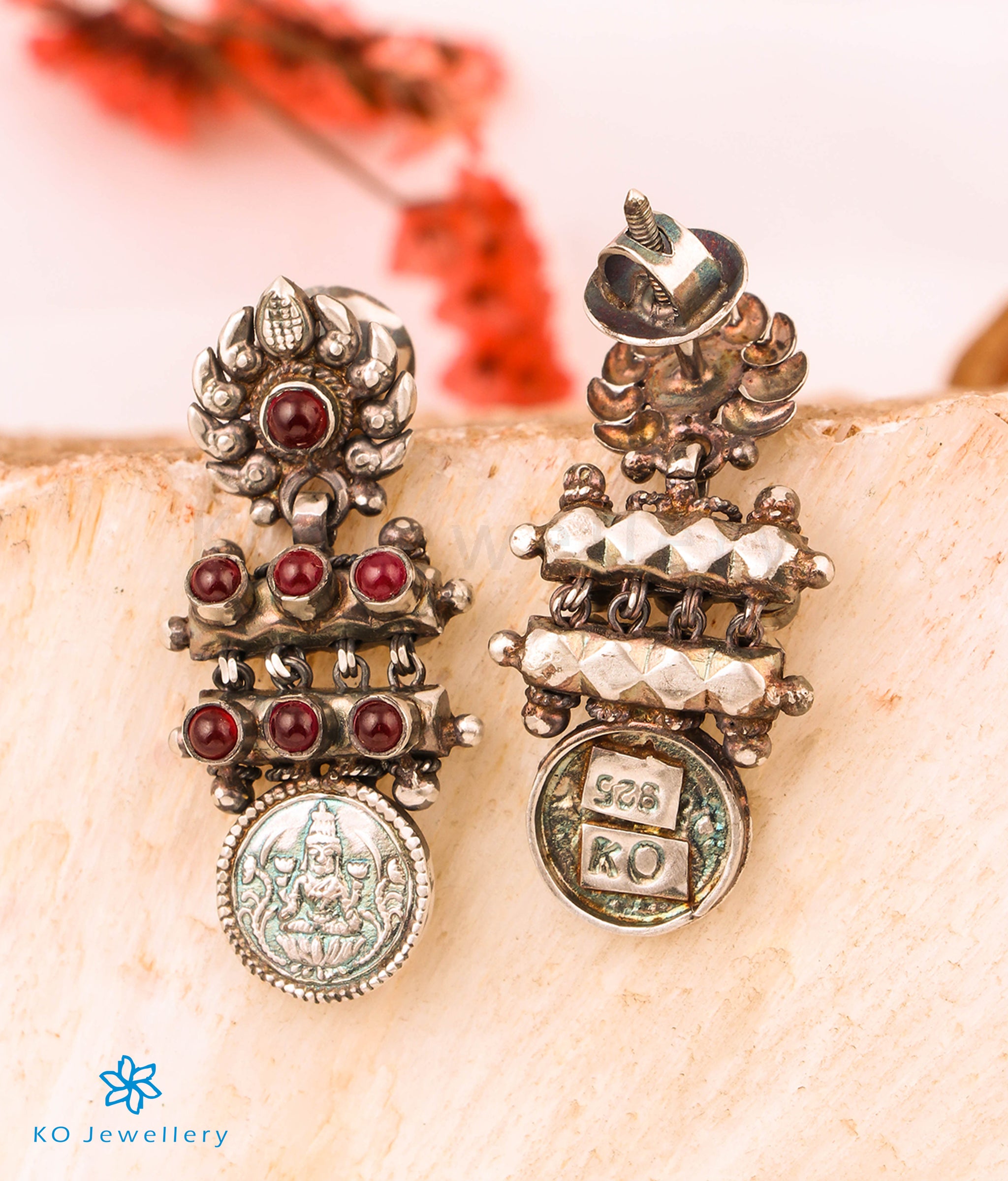An iconic design, this traditional earring with the image of goddess Lakshmi is crafted using techniques used in South Indian antique jewellery in Sterling Silver (92.5) . This piece is also available in the gold dipped finish.