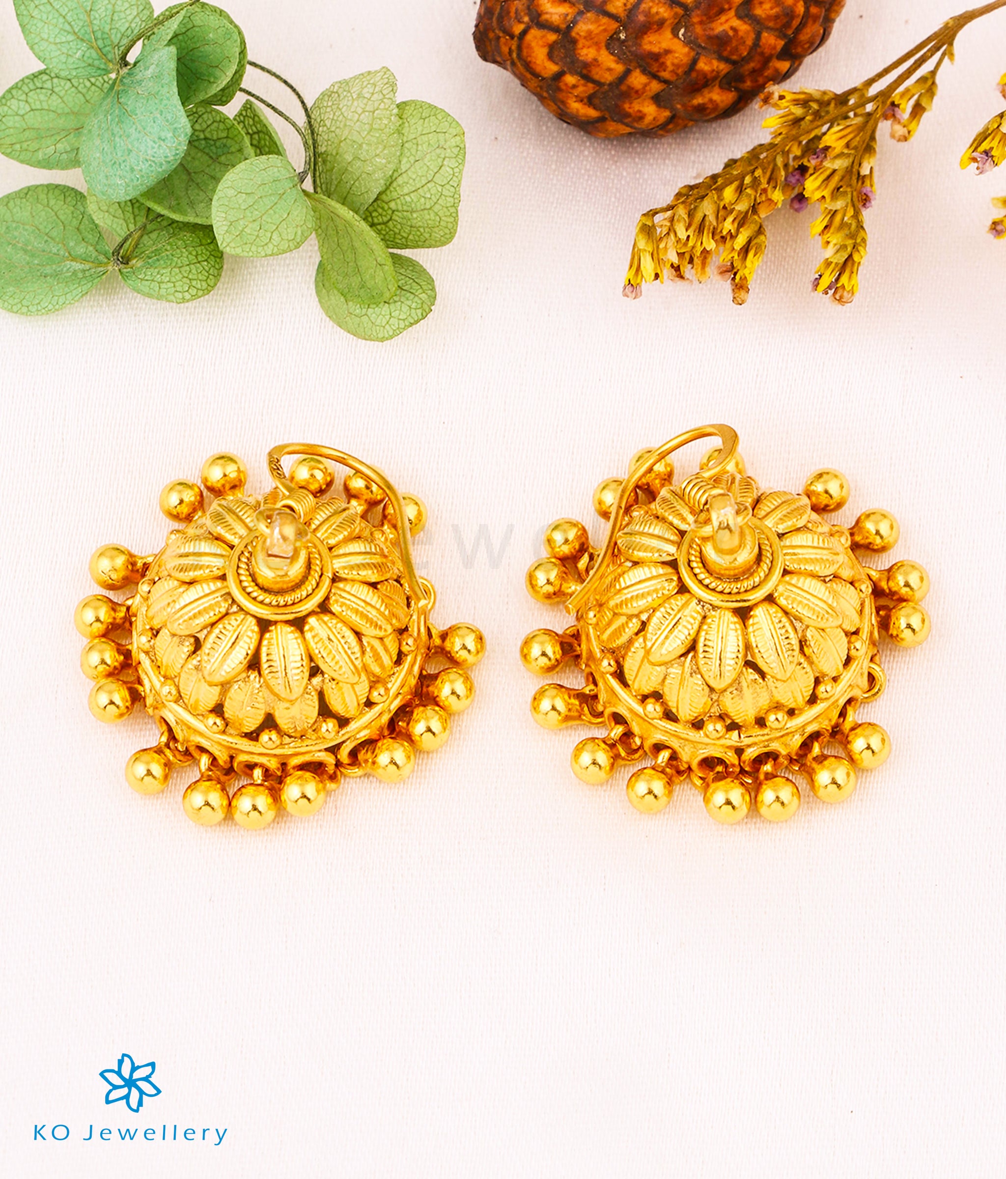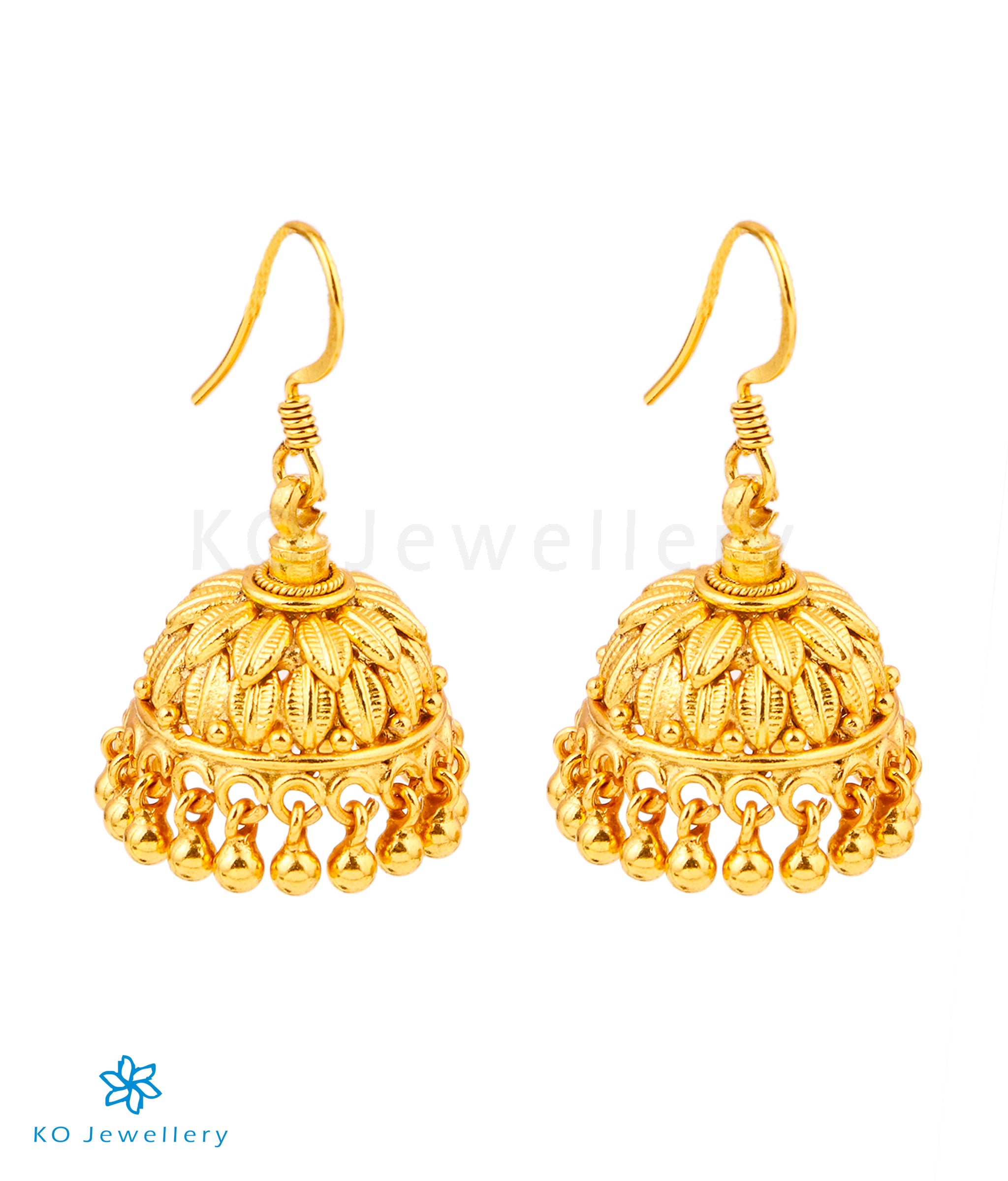 A beautiful jhumka with an intricate design, the antique gold-dipped finish gives it an irresistable antique charm. Crafted using techniques used in ancient South Indian antique gold temple jewellery the entire piece is crafted in Sterling Silver (92.5%) silver .