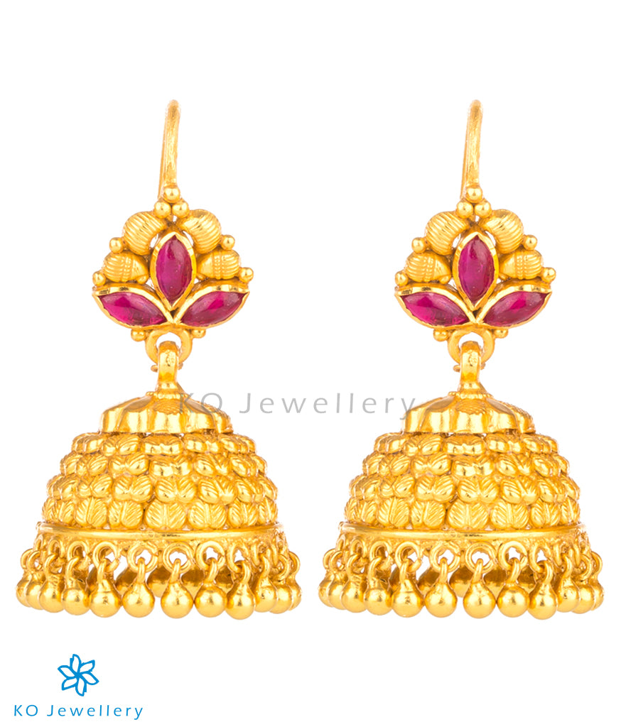 The Adhanika Silver Kempu Jhumka(Red/Hook) - KO Jewellery