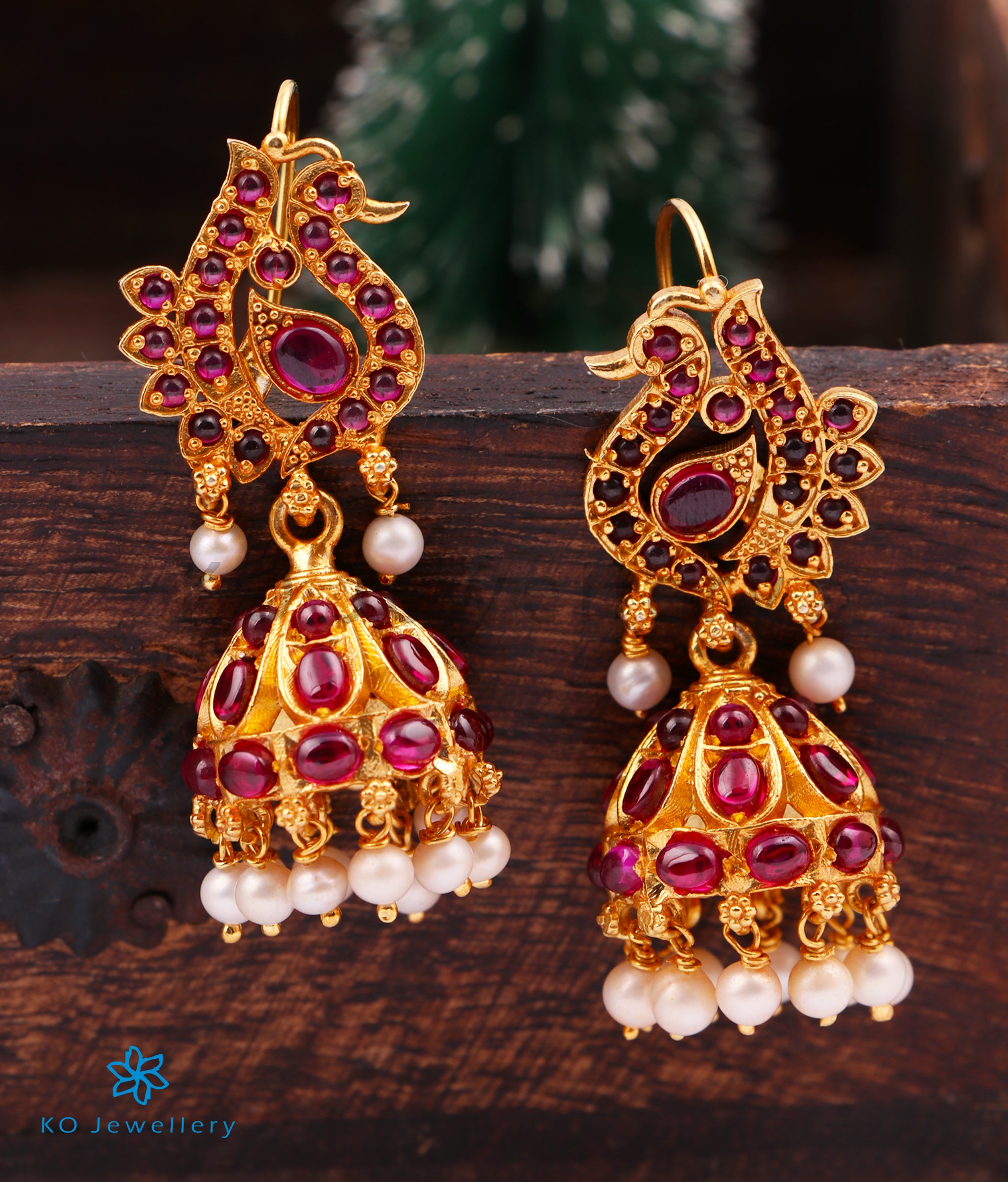 Ornate and dressy this intricately patterned, large sized jhumkas with temple motifs makes for great bridal wear.This pair is fully handcrafted in Sterling Silver (92.5%) and gold-dipped to perfection. Crafted using techniques used in ancient South Indian antique gold temple jewellery it is made even more alluring by the peacock-motif ear-studs and lovely pearls.Ornate and dressy this intricately patterned, large sized jhumkas with temple motifs makes for great bridal wear.This pair is fully handcrafted in Sterling Silver (92.5%) and gold-dipped to perfection. Crafted using techniques used in ancient South Indian antique gold temple jewellery it is made even more alluring by the peacock-motif ear-studs and lovely pearls.