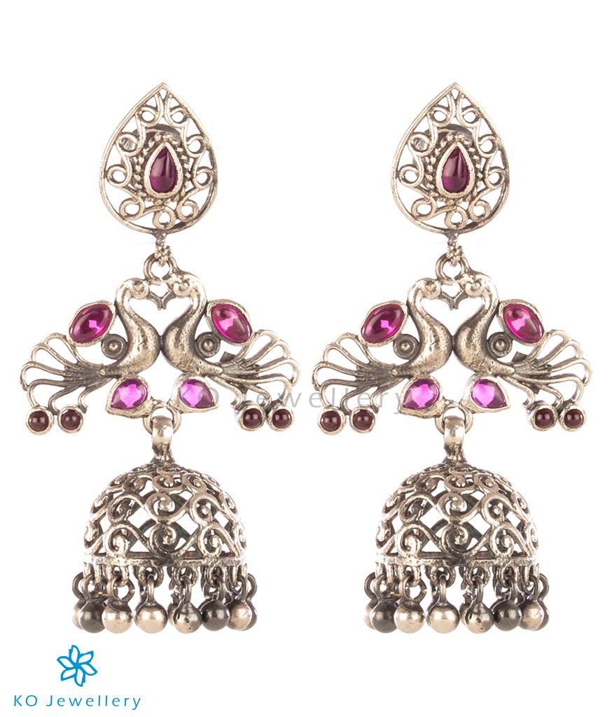 The Kumaravahin Silver Peacock Jhumka (Oxidised)