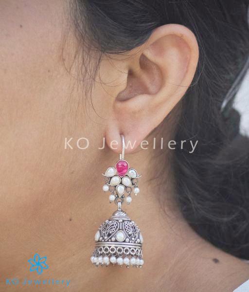 The Mallika Silver Red Jhumka (Oxidised/Hook)
