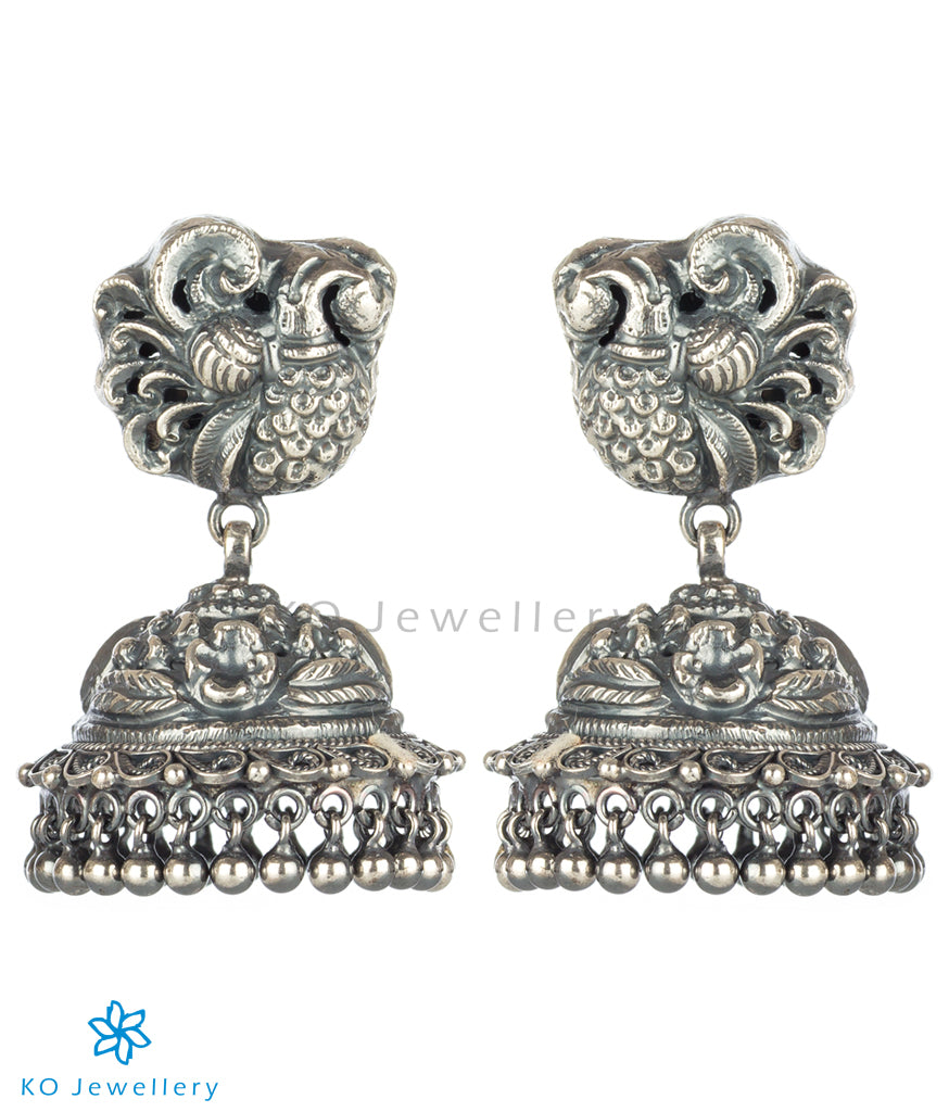 The Naman Nakkasi Silver Peacock Jhumka (Oxidised)