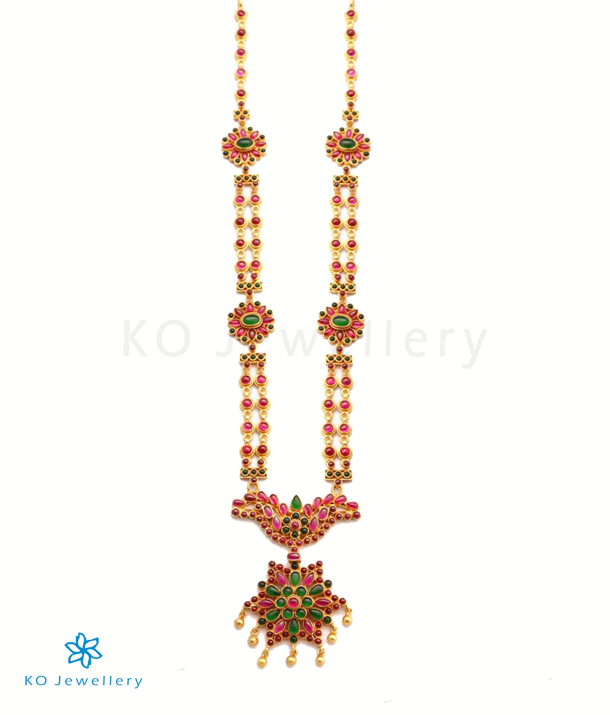 This necklace is a piece of art! Handcrafted in a intricate design using red and green cloured stones in a harmonious combination, we bet you cant take your eyes off this beauty.
