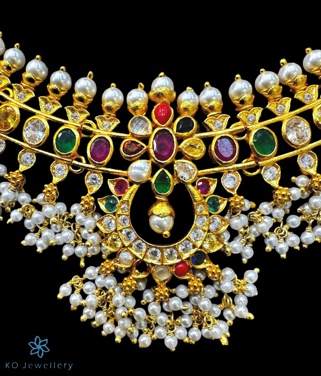 Gemstones used : AAA+ Quality Cubic Zirconia ,Natural pearl, Cat's eye, Garnet, Recreated Coral, kempu stone (also known as spinel or Zircon).