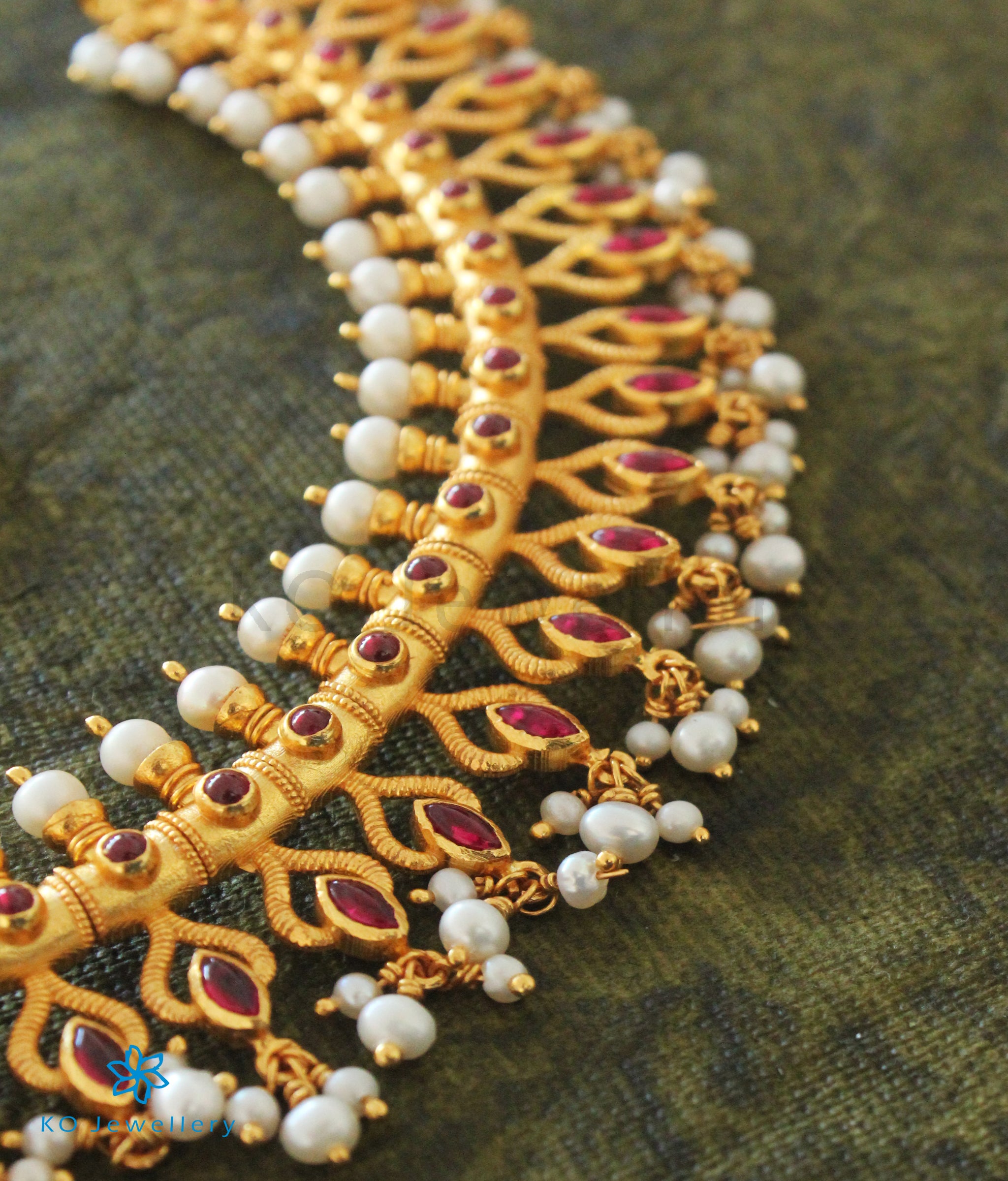 Gemstones used: kempu stone (also known as spinel or Zircon), natural Pearl.