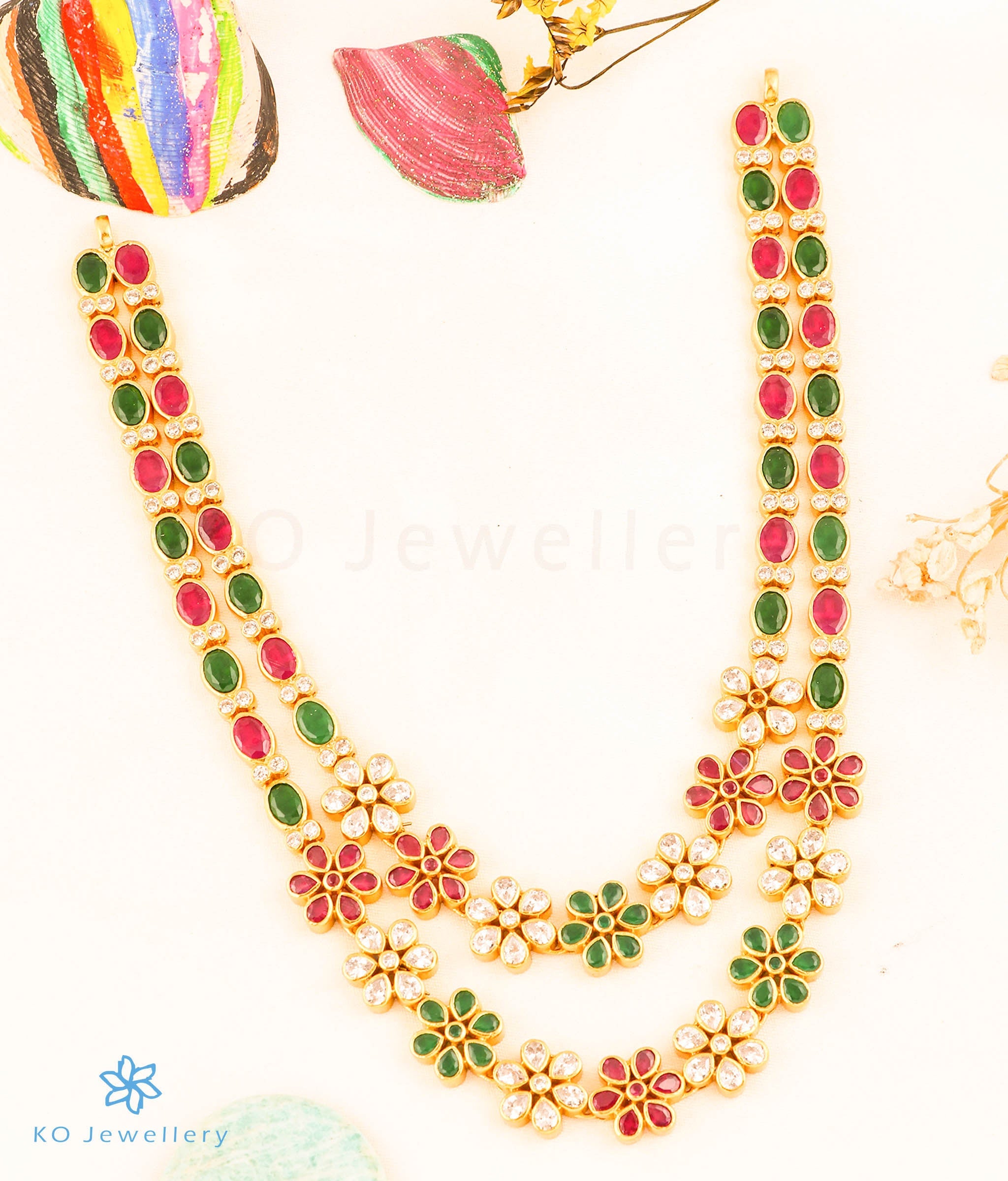 The Indrani 2 layer Silver Kemp Necklace (Red/Green)