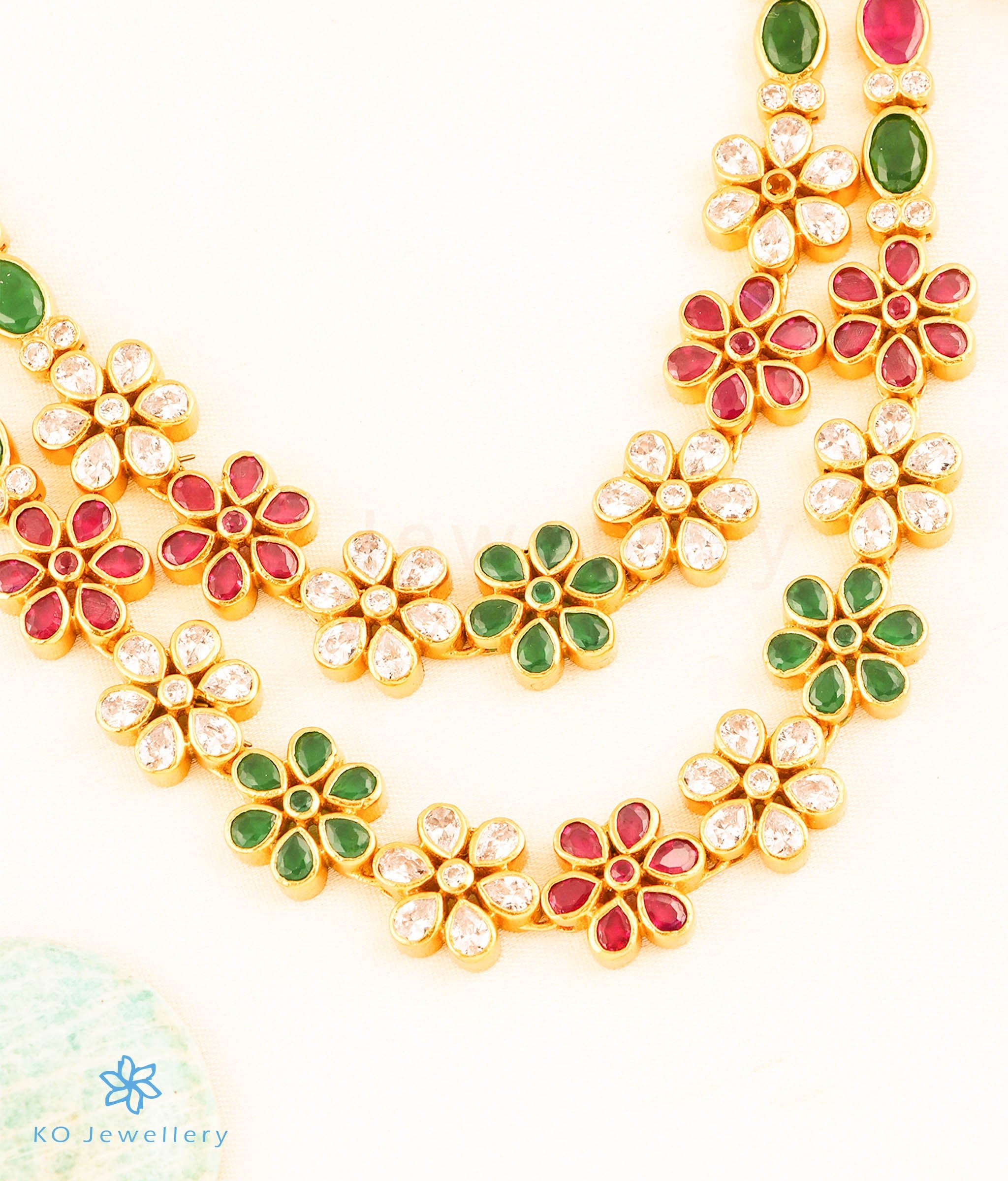 The vibrant hues of the kemp stones contrast beautifully with the brilliance of high-grade CZs, creating a rich, heritage-inspired look that’s ideal for weddings, festive occasions, or elegant evening wear. Whether you're pairing it with a silk saree or a contemporary fusion outfit, this necklace promises to add unmatched sophistication and shine.