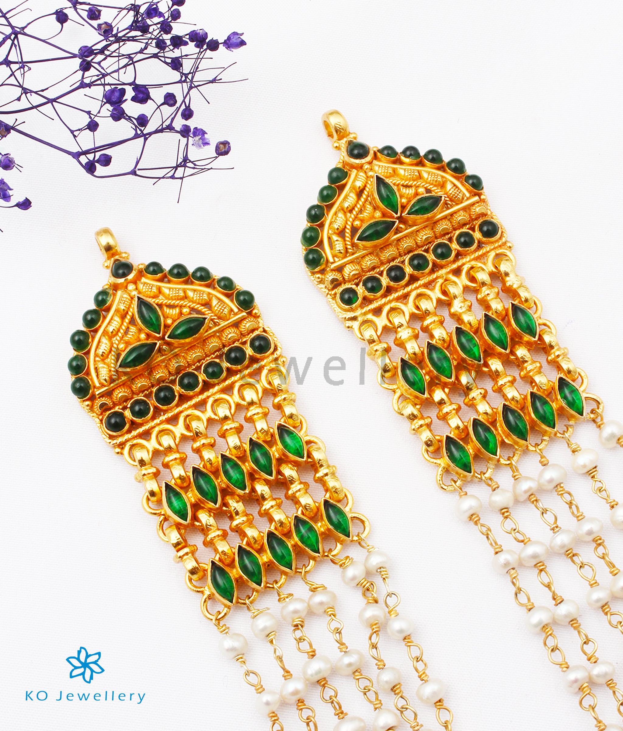 Gemstones used: natural cultured Pearl, kempu stone (also known as spinel or Zircon).