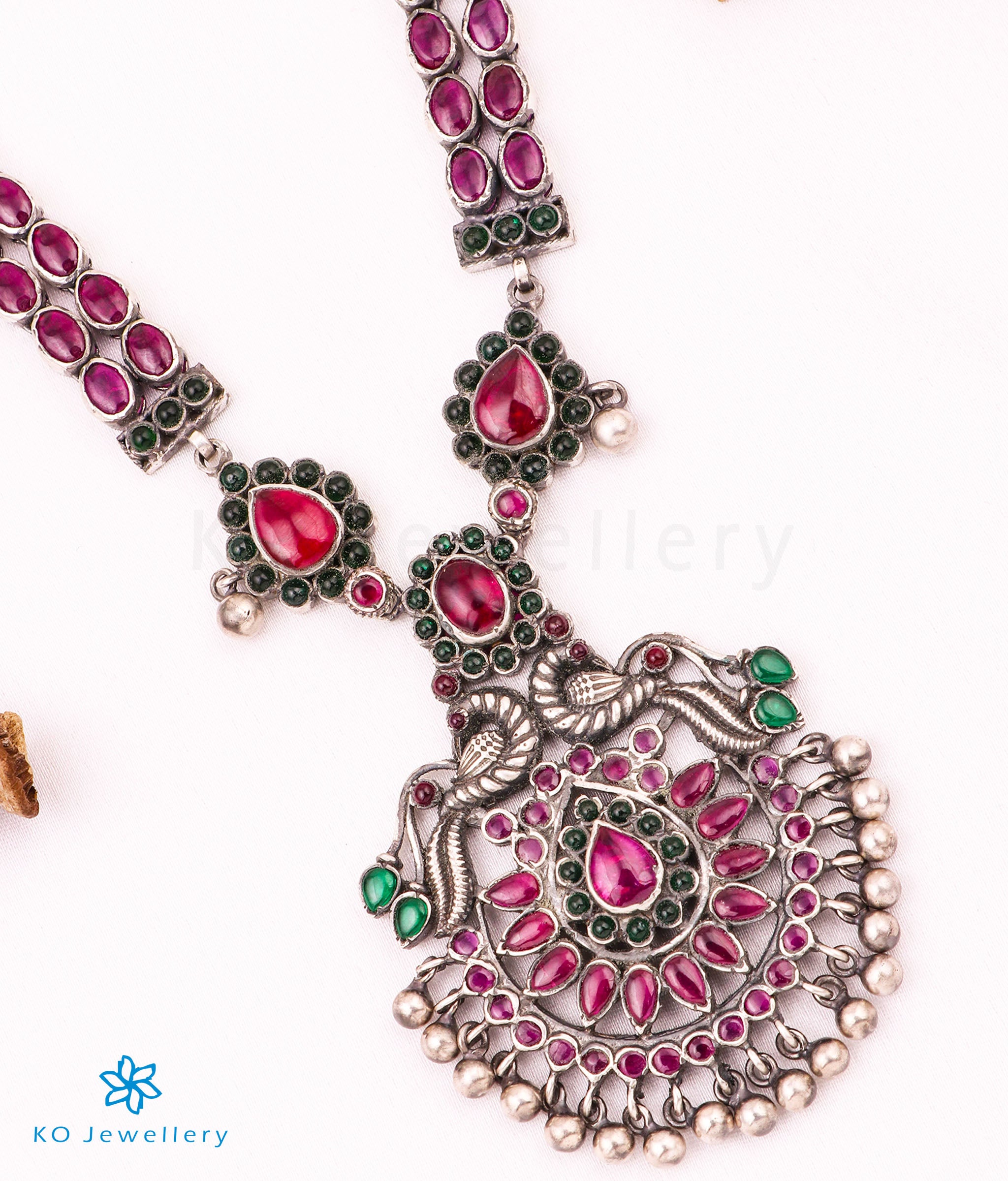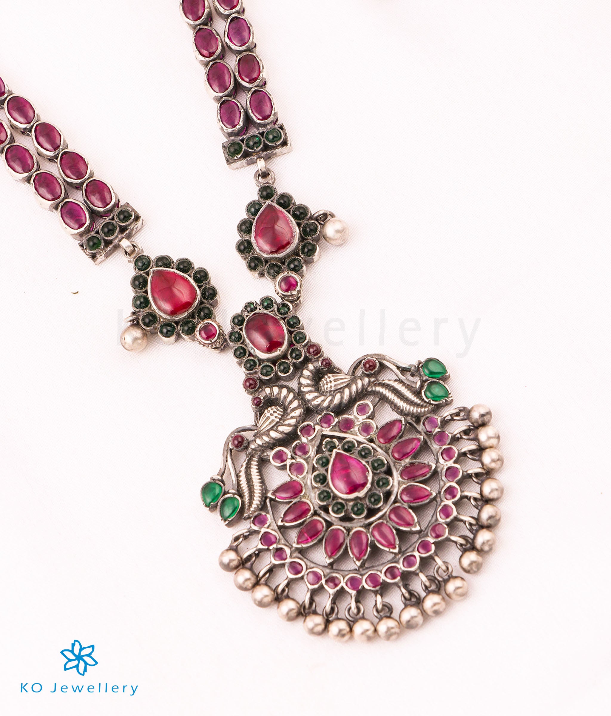 The Kumaravahin Silver Peacock Kempu Necklace (Oxidised)
