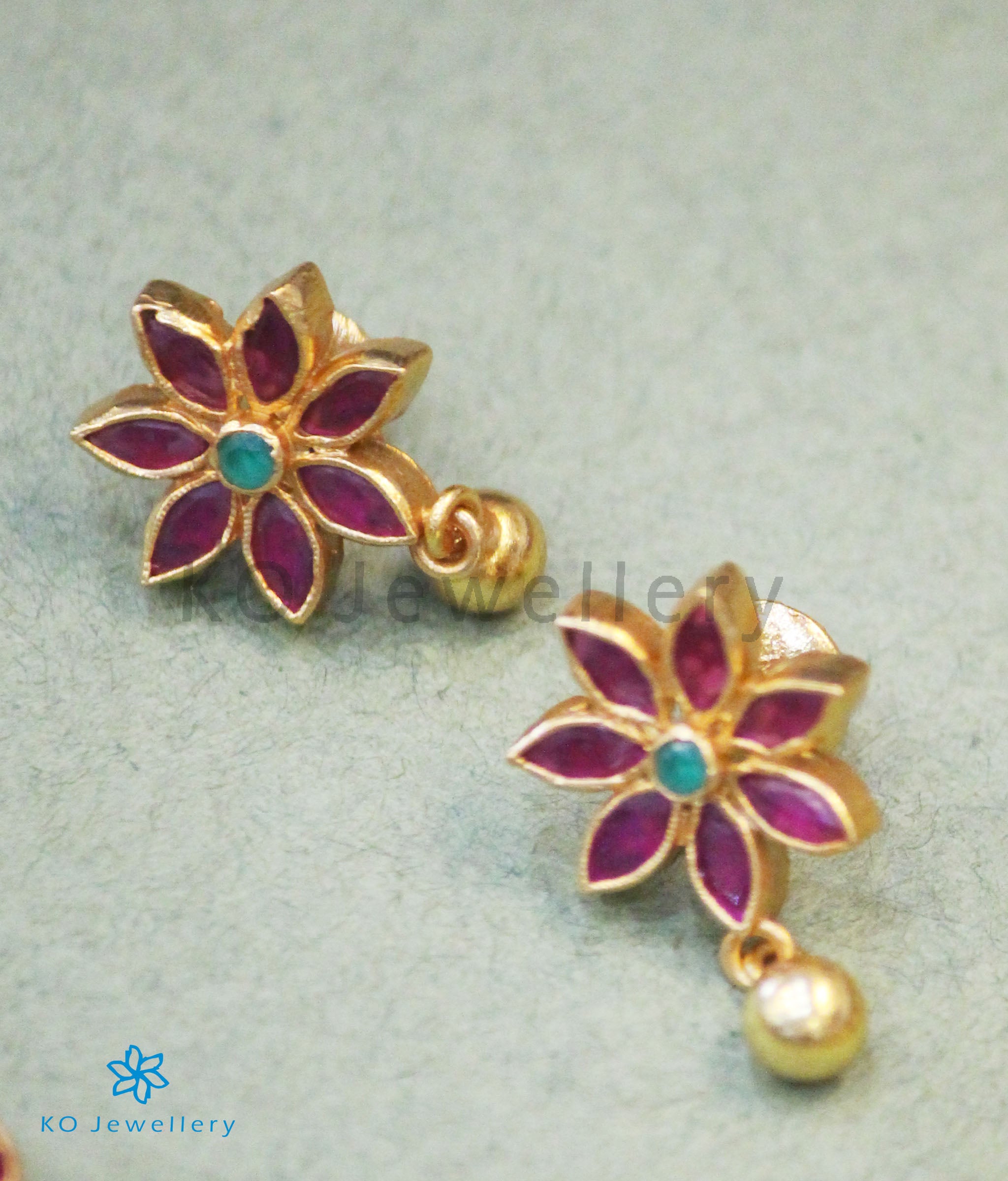 Gemstones used: white Zircon, kempu stone (also known as spinel or Zircon).