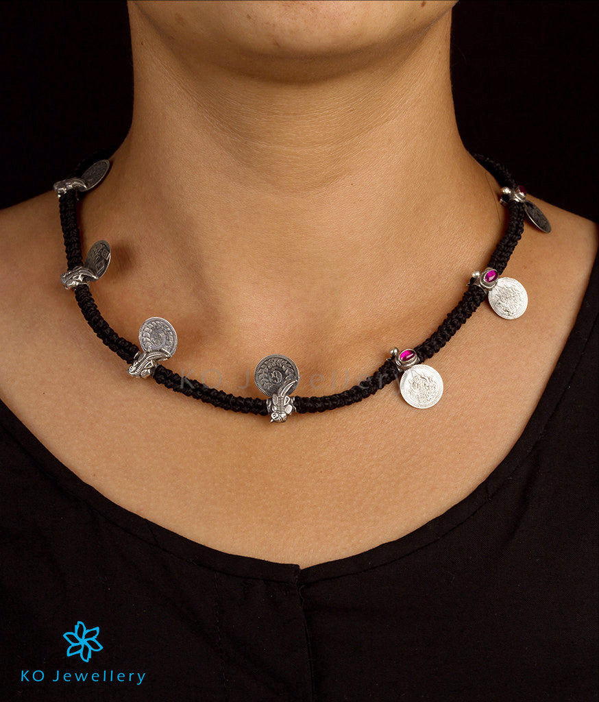 The Loukya Silver Coin Necklace Set (Black/Oxidised)