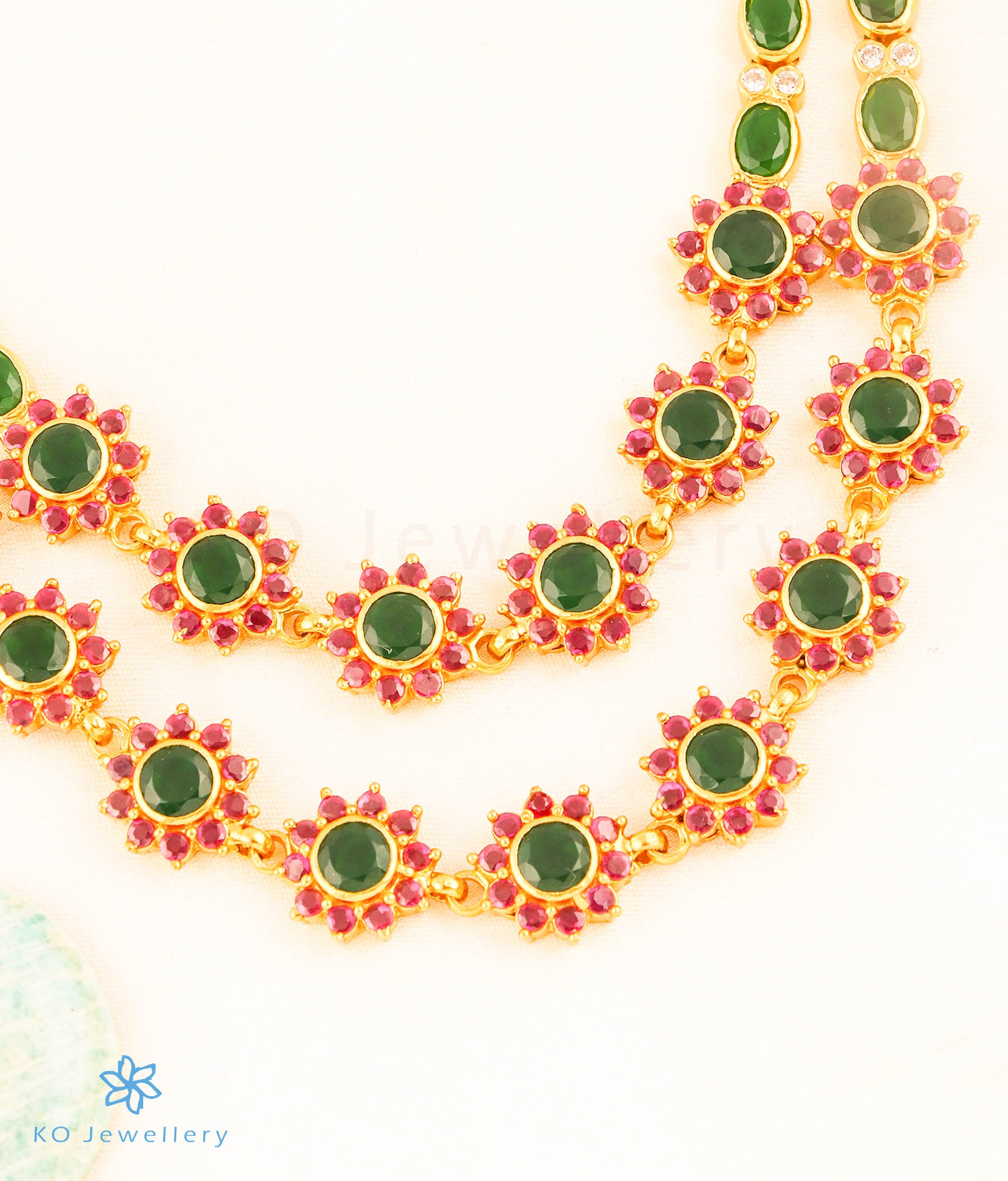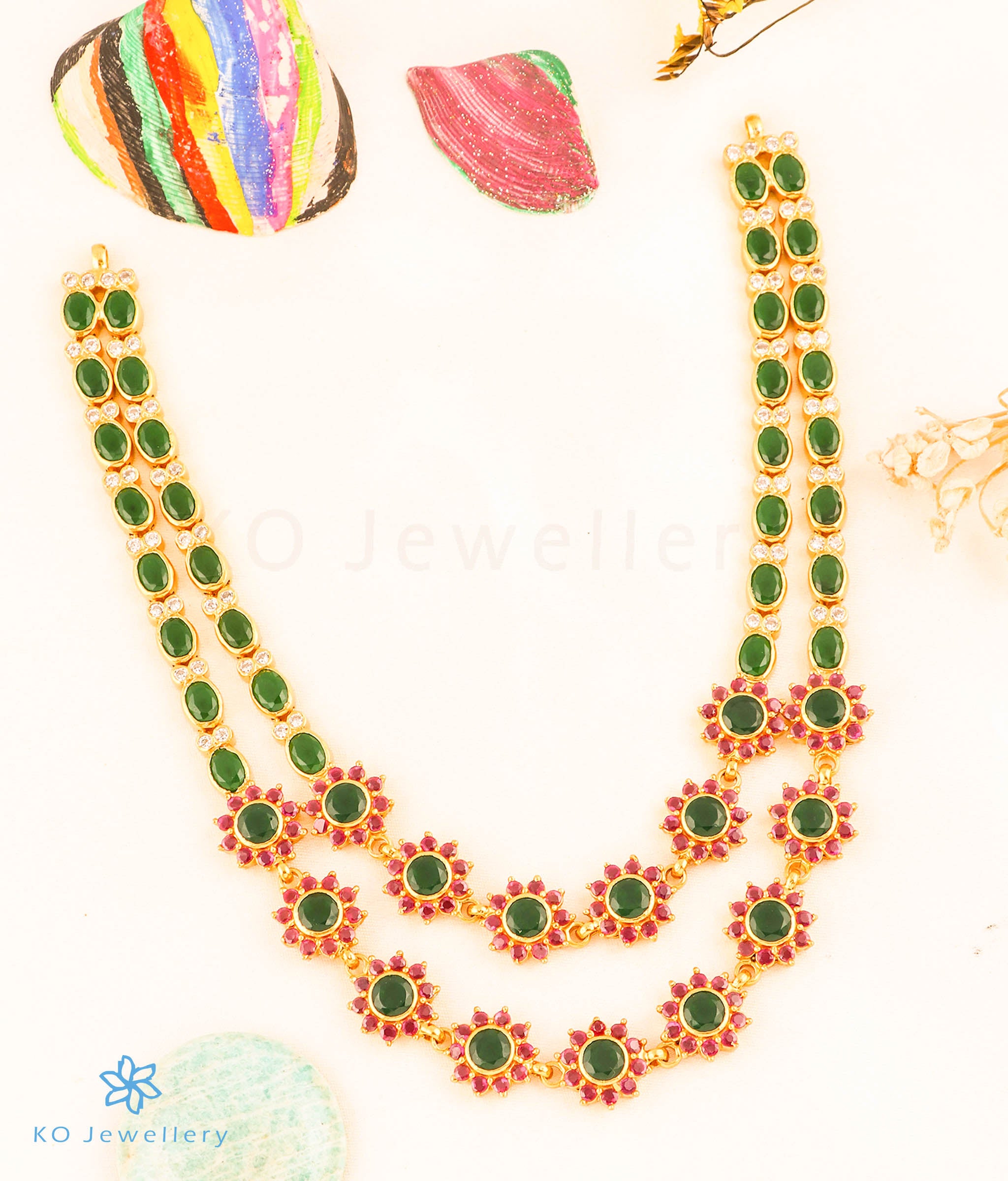 The Madhulika 2 layer Silver Kemp Necklace (Red/Green)