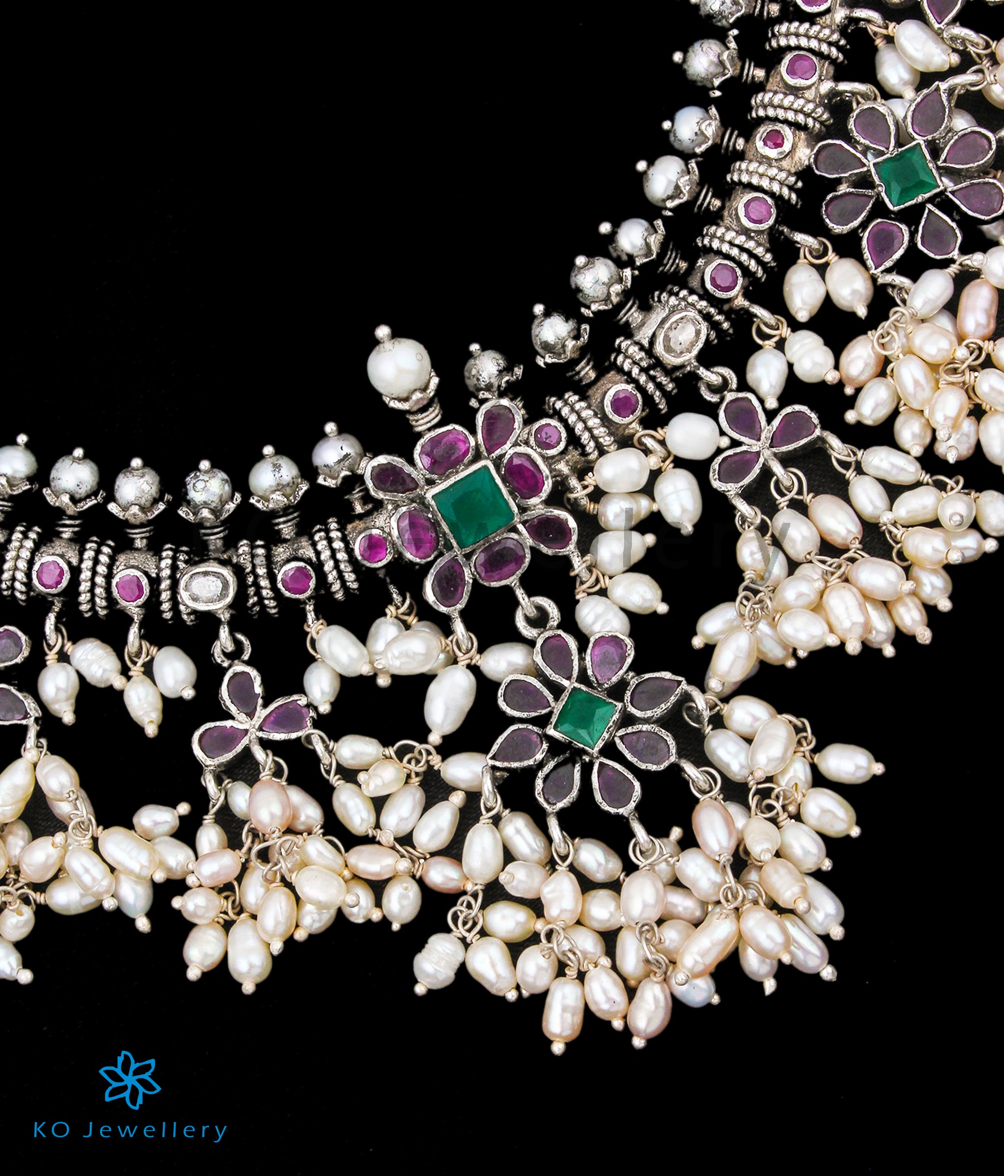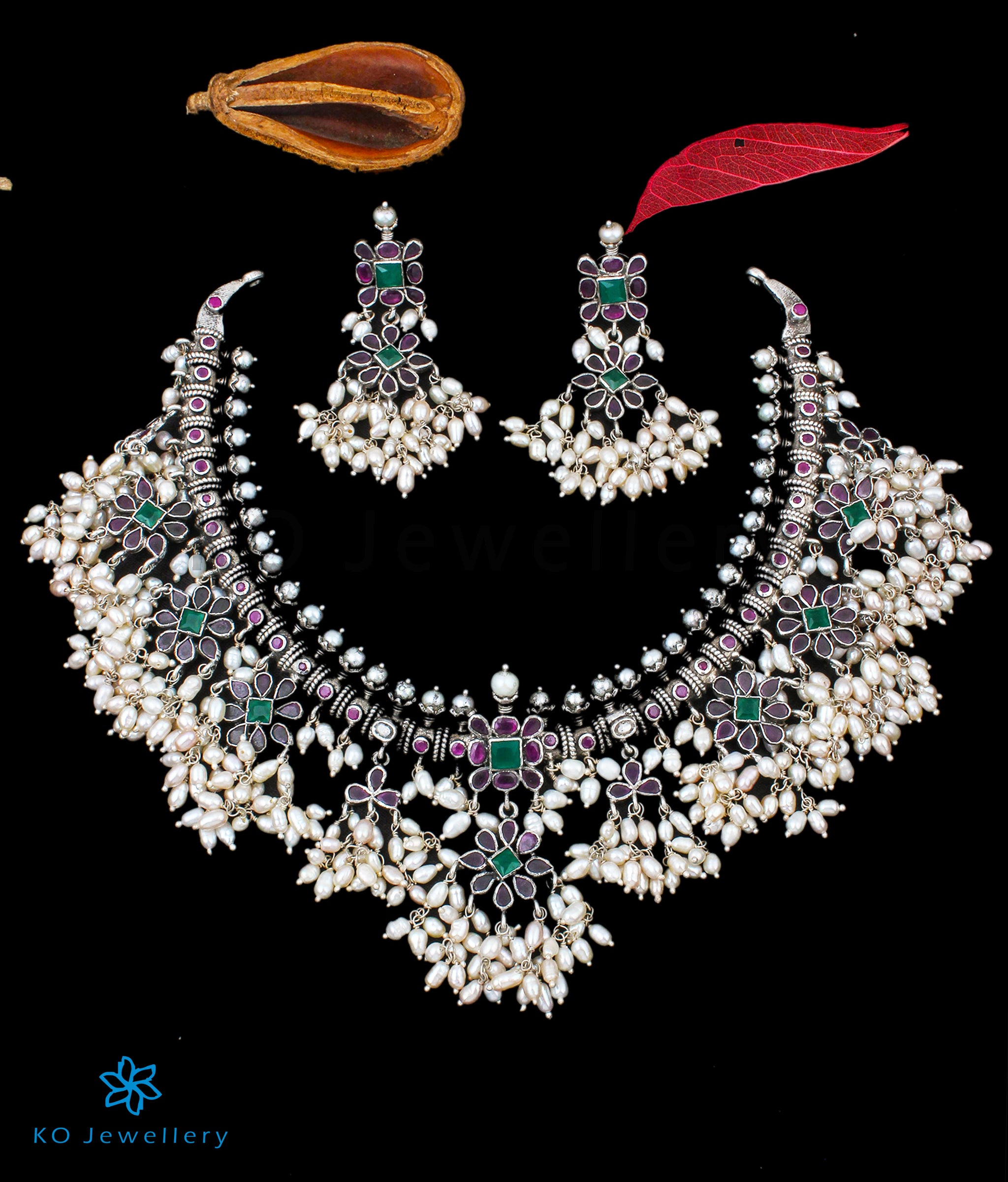 Gemstones used: kempu stone (also known as spinel or Zircon), natural freshwater Pearl.