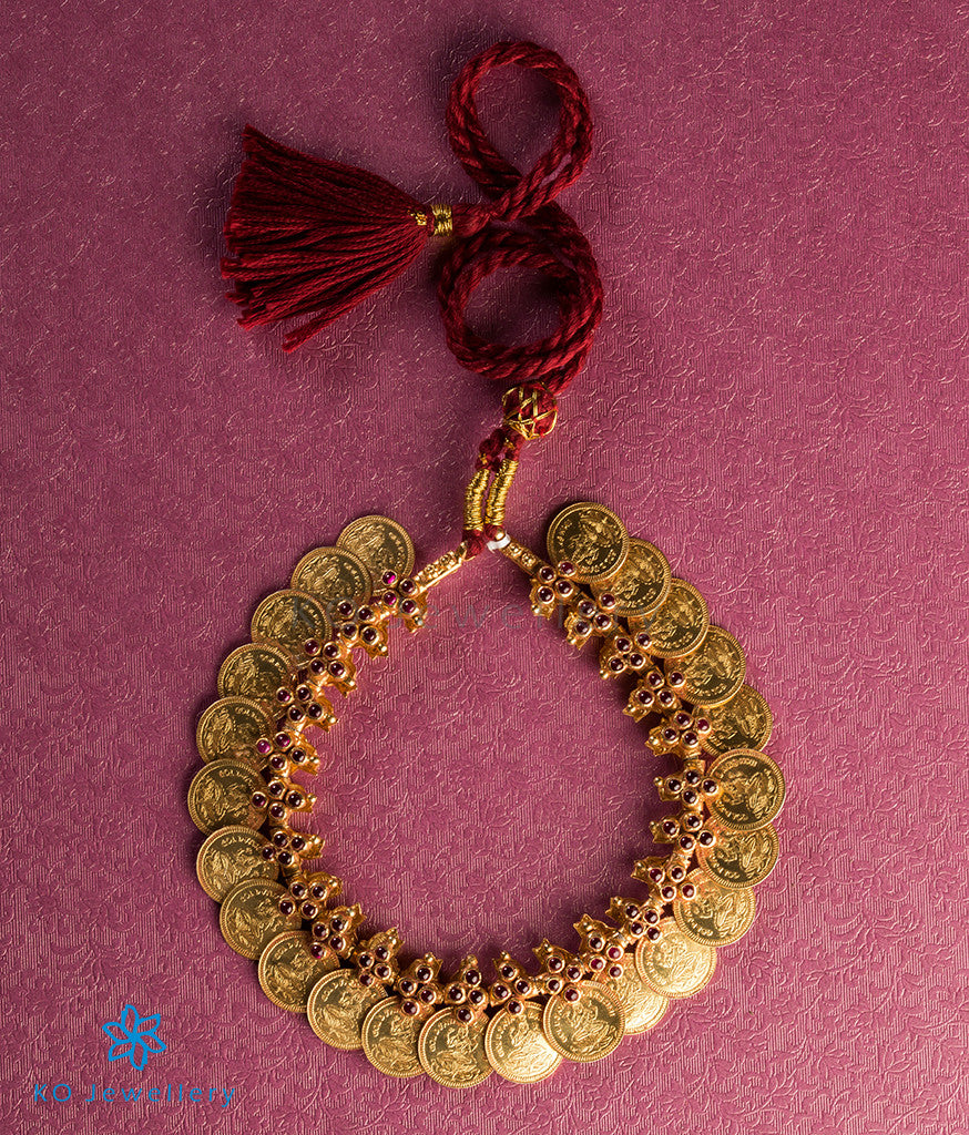 The Medhavin Antique Silver Kasu Necklace(Red)