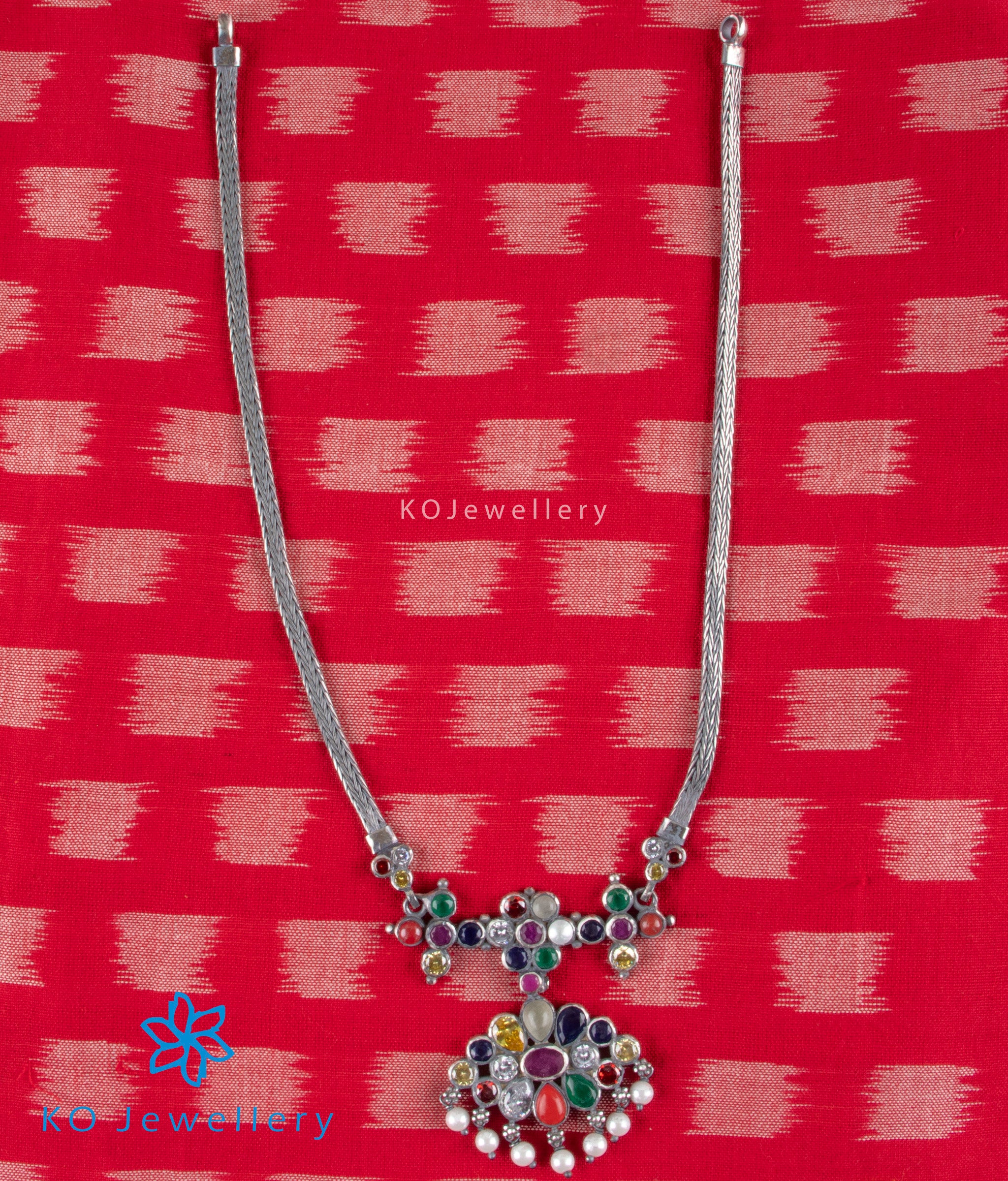 The Mithuna Silver Navratna Necklace (Oxidised)