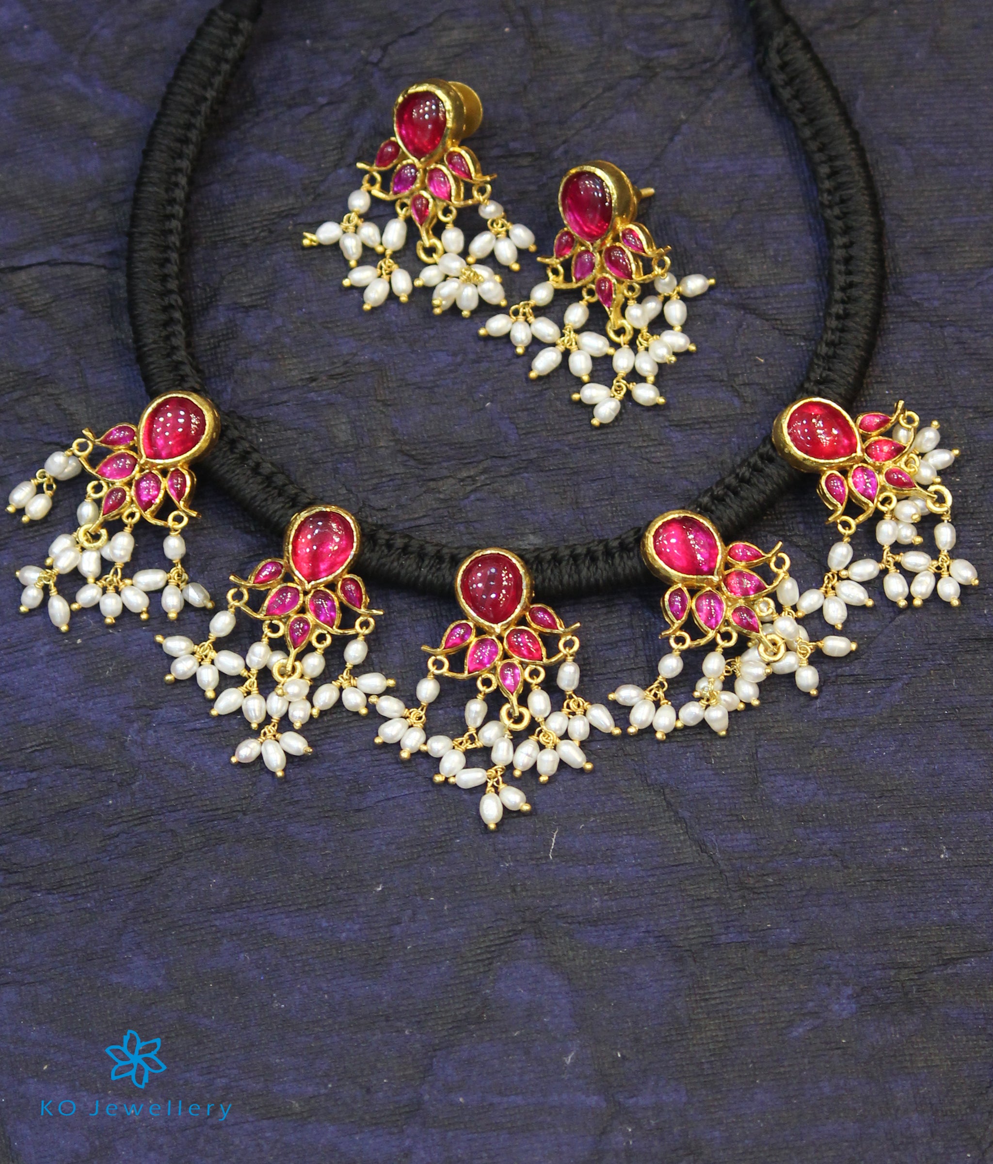Gemstones used: natural cultured premium-quality Pearl ; kempu stone (also known as spinel or Zircon).
