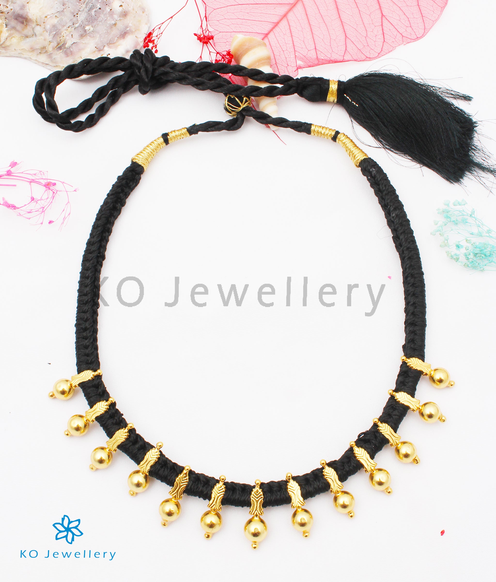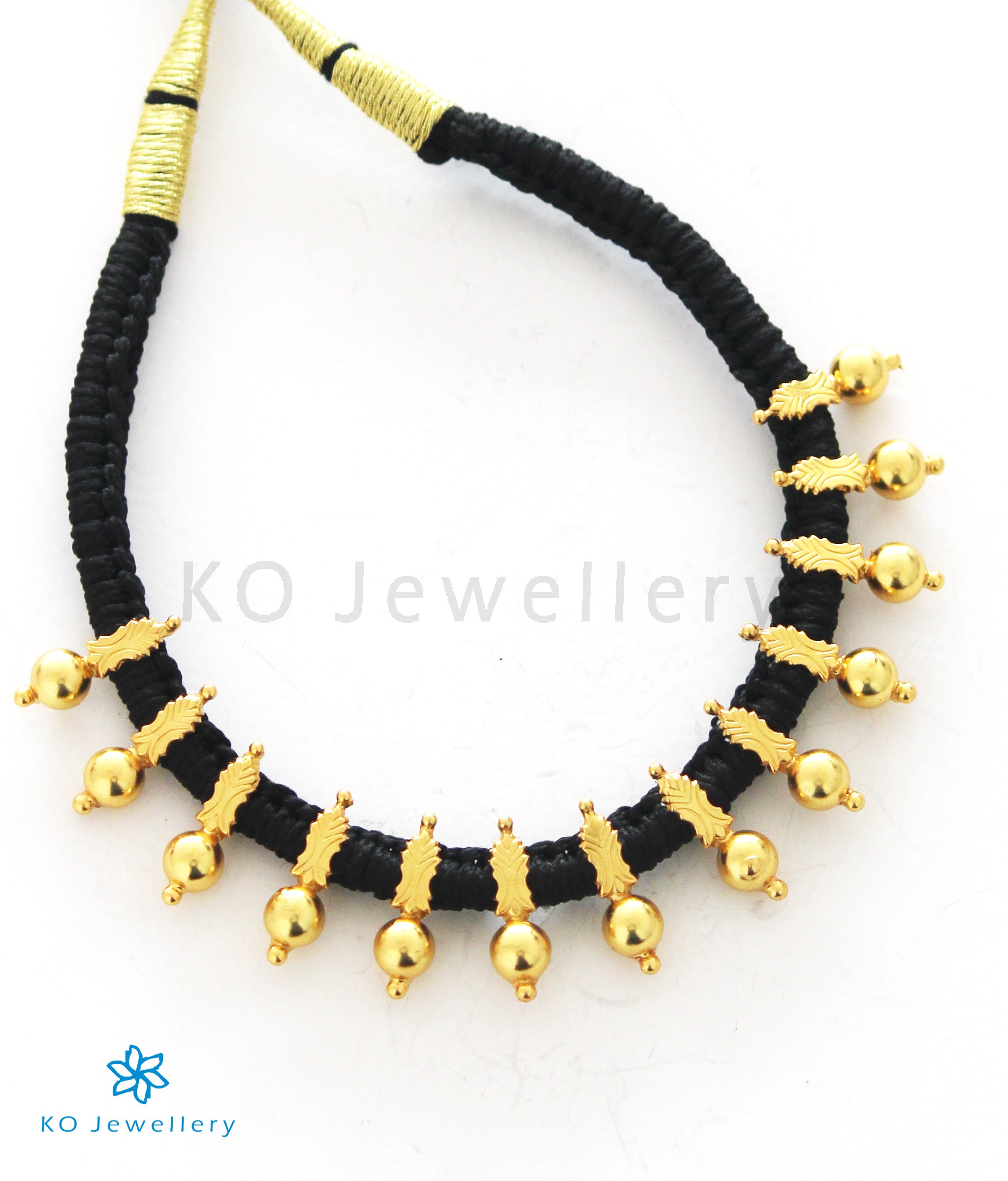 Gold-dipped beads of Sterling Silver (92.5%) are handwoven into black cotton thread to create this lovely ethnic necklace. The necklace is in a choker design.Crafted using techniques used in ancient South Indian antique gold temple jewellery the entire piece is crafted in pure silver and gold-dipped.