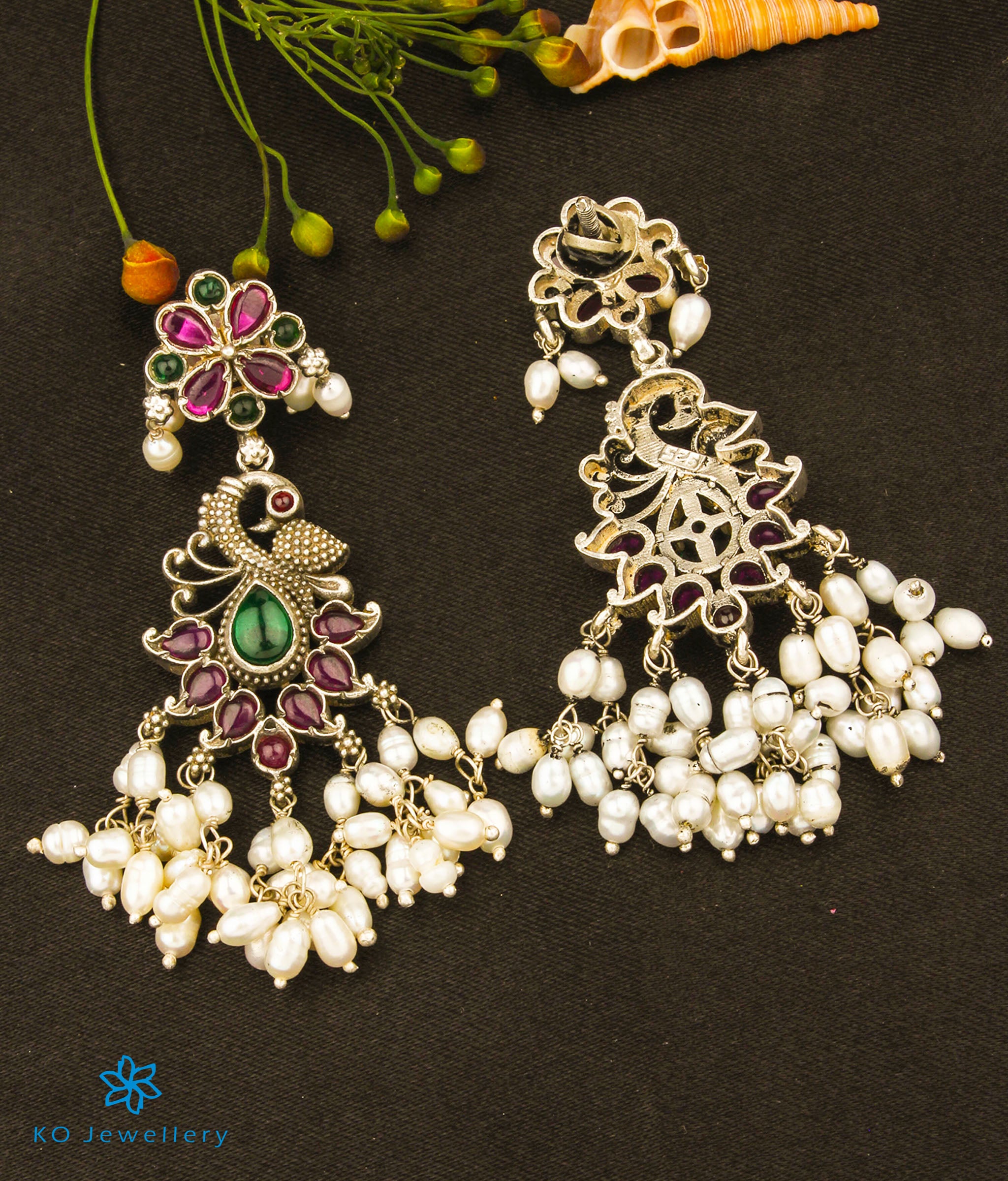 With its breathtaking design and rich cultural significance, this 925 silver guttapusalu necklace with premium pearls and peacock motifs is a perfect blend of tradition and beauty. A must-have for collectors and connoisseurs of heritage jewelry, handcrafted in Sterling Silver (92.5%) with techniques, used to craft temple jewellery for centuries this necklace is a heirloom piece.