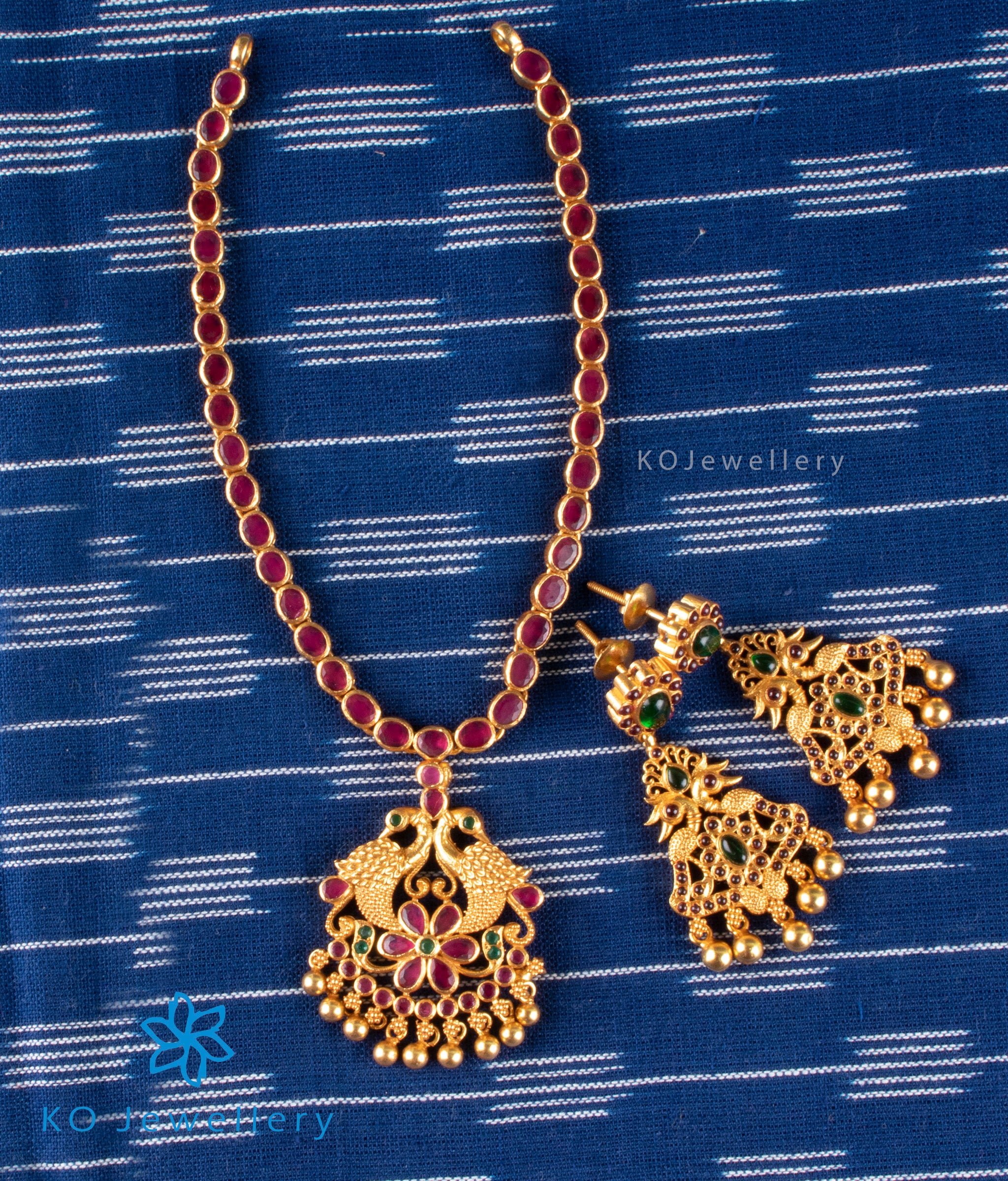 The Soma Silver Peacock Kemp Necklace-Gold Plated Bridal Jewellery - KO Jewellery