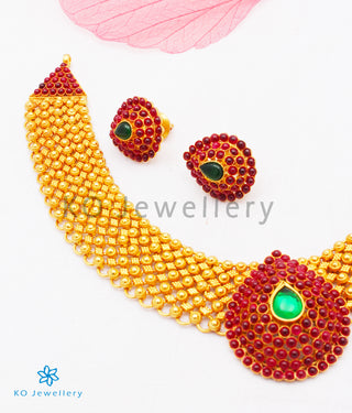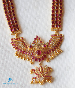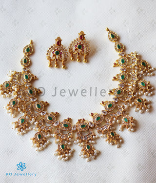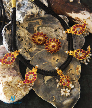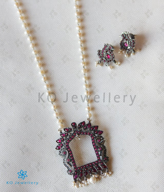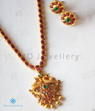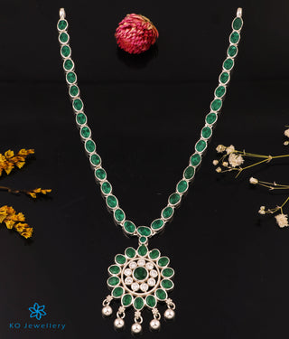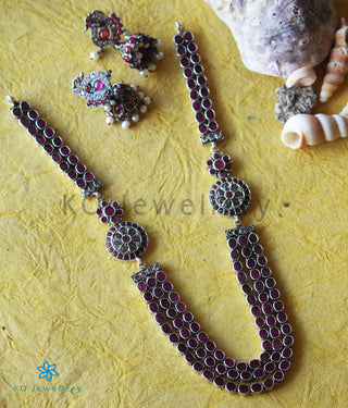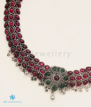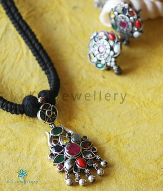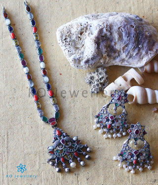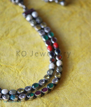 The Darshita Silver Navaratna Peacock Necklace(2 Layers/Oxidised)