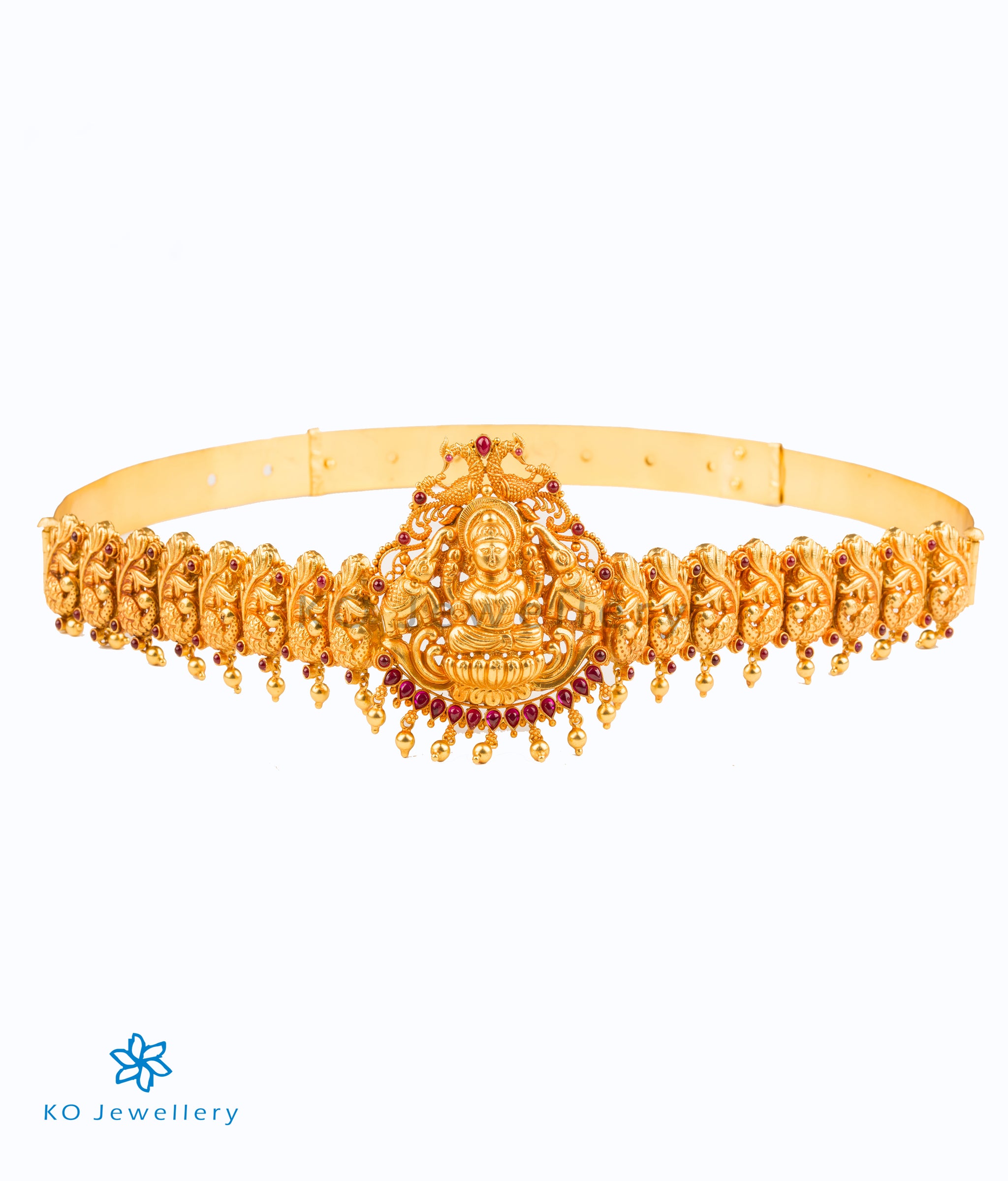 Variously called `Daabu' , `Vaddanam' , `Oddiyanam' or `Sonta patti' the waist belt is an important component of a bride's attire in South India. The waist belt is adjustable to any waist size.