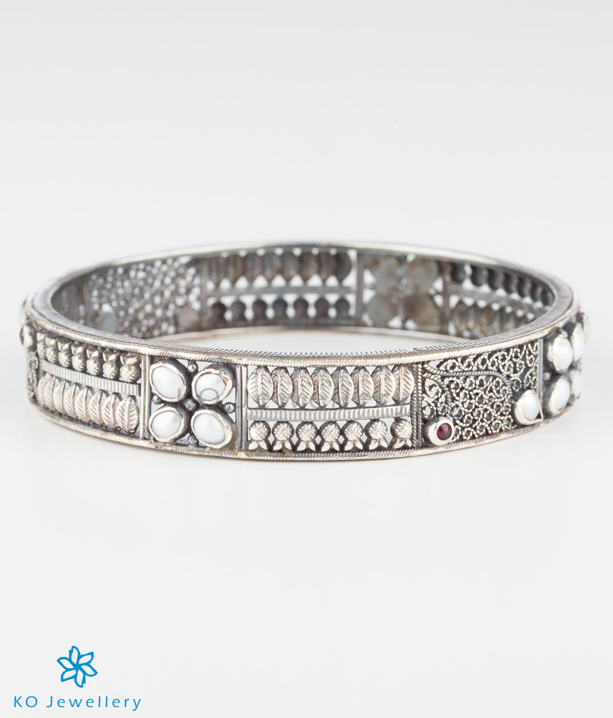 The Maya Silver Pearl Bangle-Single (Oxidised/Size/2.2/2.4/2.6/2.8)