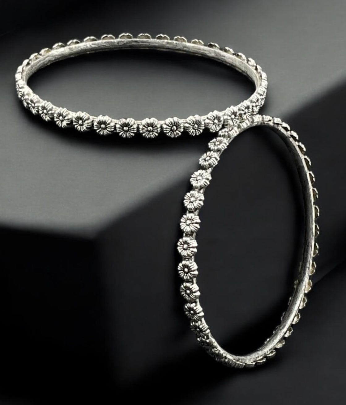 The Parva Silver Floral Bangle- Single (Size /2.2/2.4/2.6/2.8)