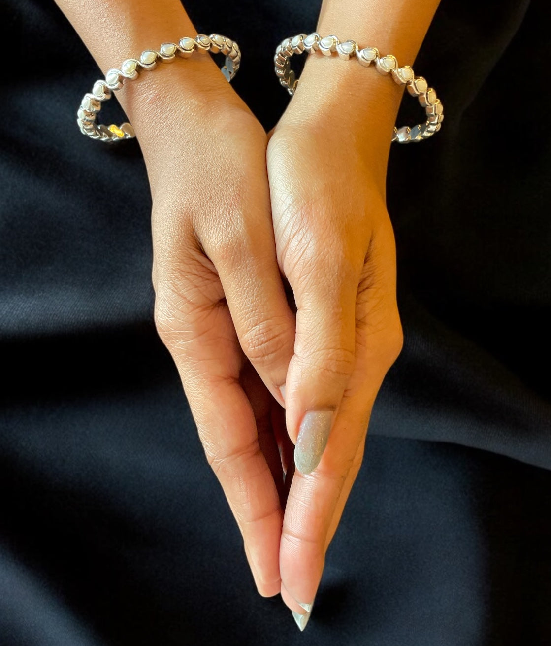 The Piyali Silver Pearl Bangle- Single (Oxidised/Size/2.2/ 2.4/2.6/2.8)