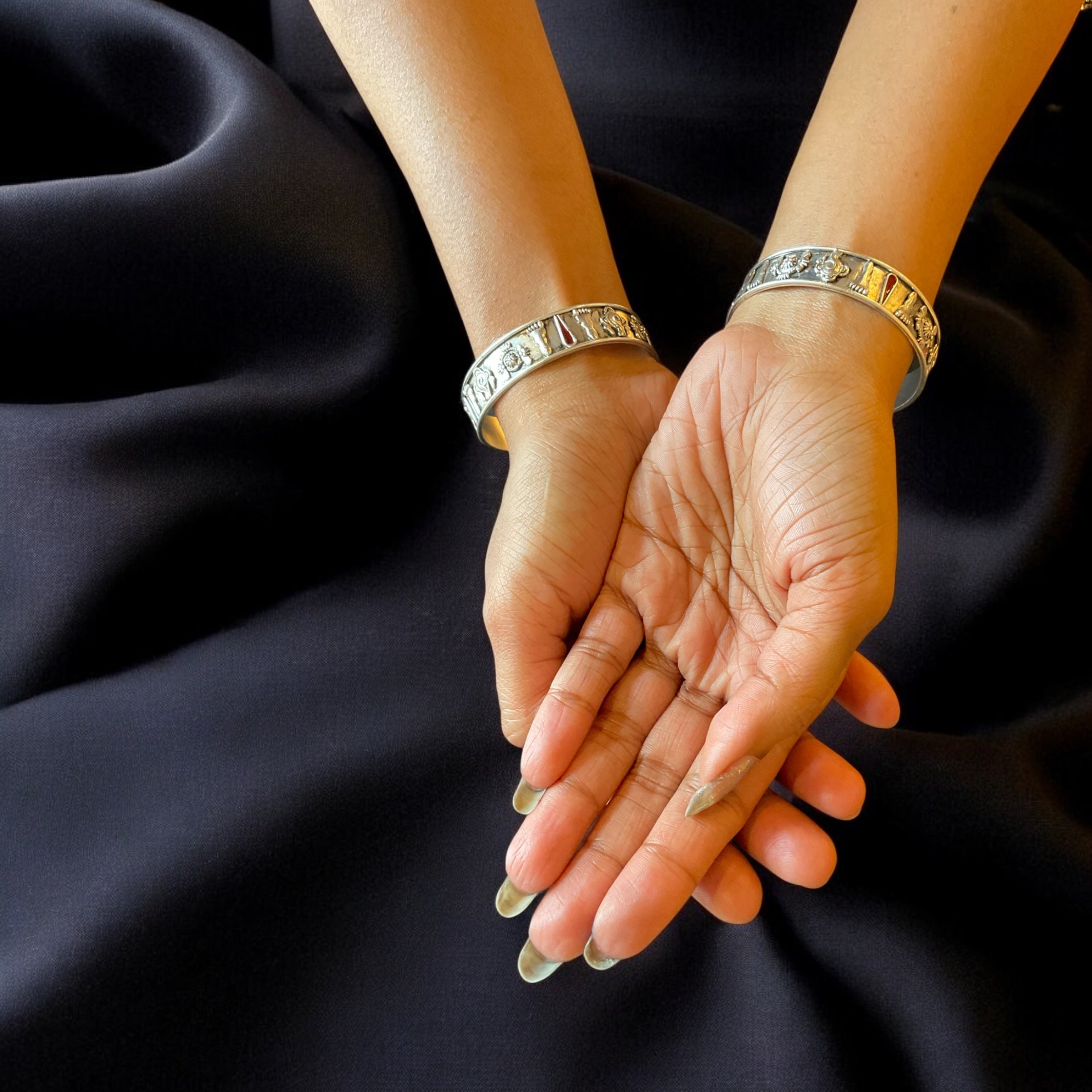 The Shankhu, Chakra Silver Bangle- Single (Oxidised/Size 2.2/2.4/2.6/2.8)
