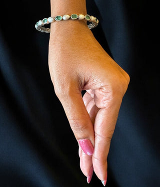 The Pihu Silver Emerald & Pearl Bangle- Single (Size/2.2/ 2.4/2.6/2.8)