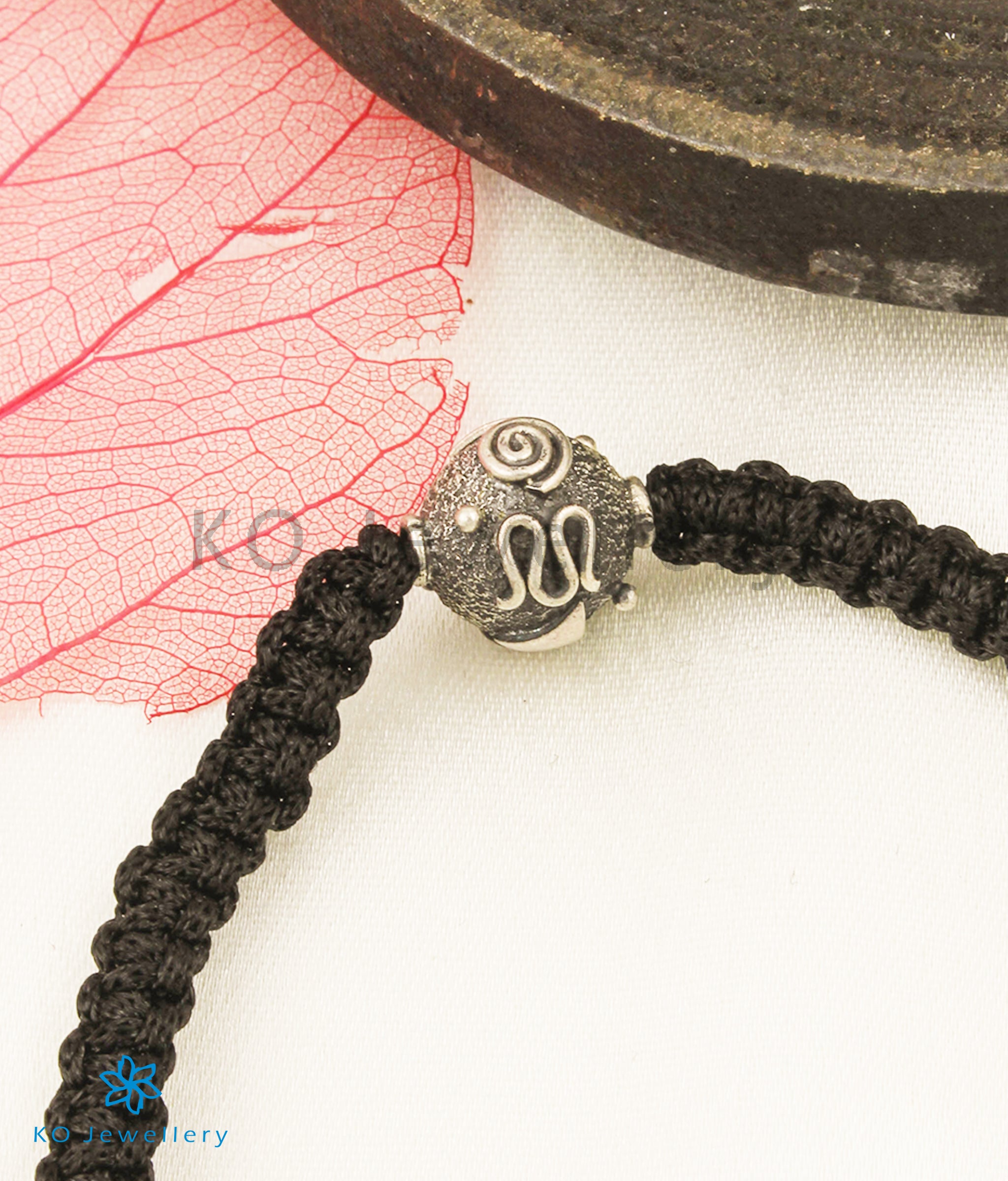 Sport a cool accessory on your wrist , with this pretty handwoven thread bracelet with a single handcrafted Sterling Silver (92.5%) bead at its center. This is a unisex design and has an adjustable strap .