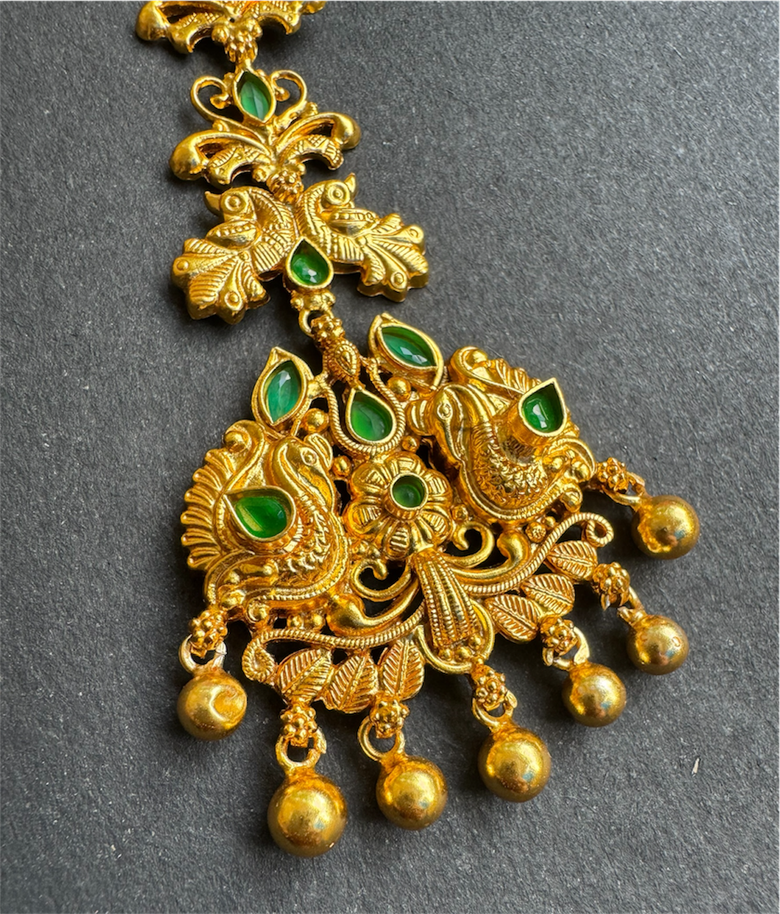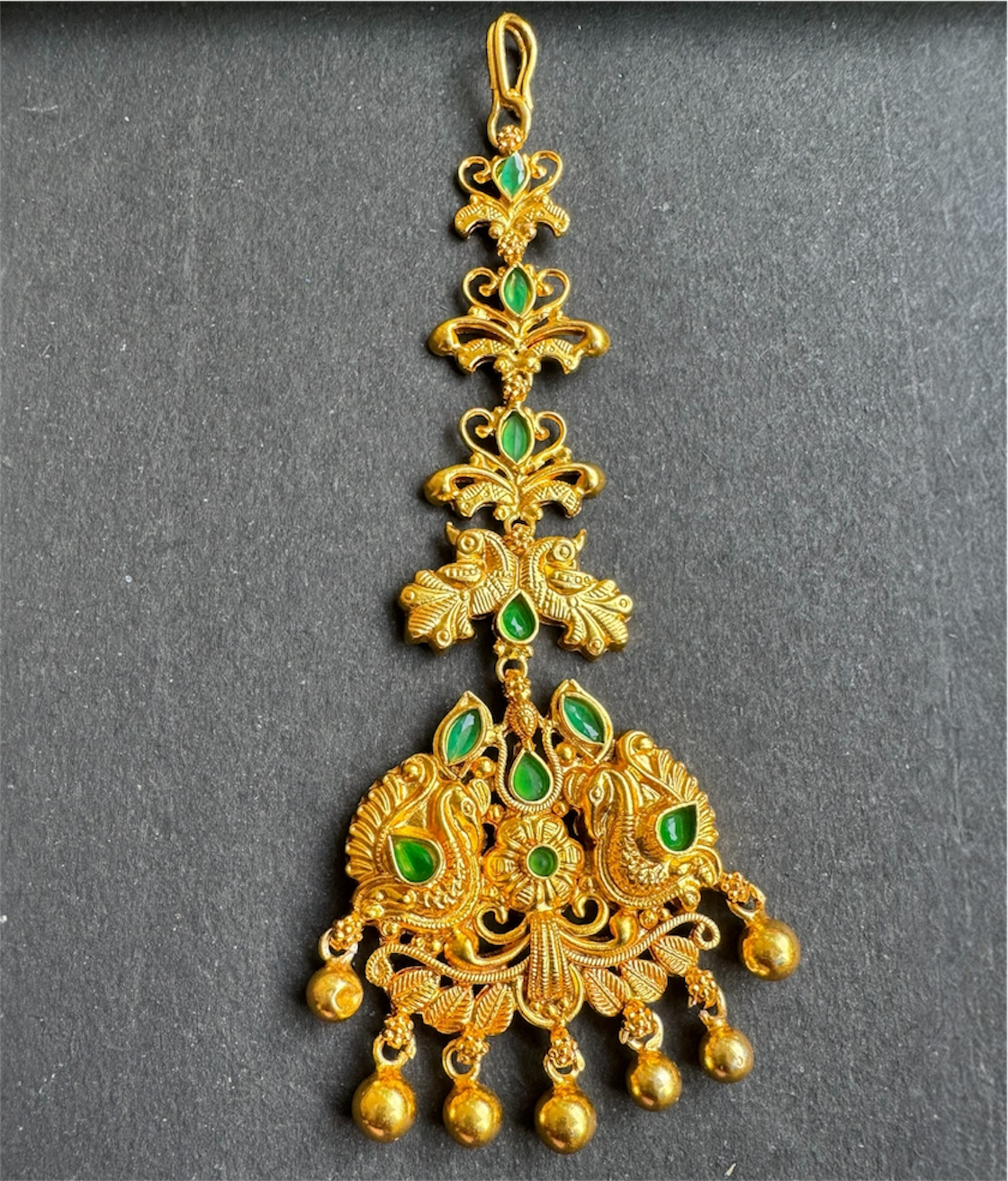 The Svarnika Silver Peacock Bridal Maang Tikka (Green)