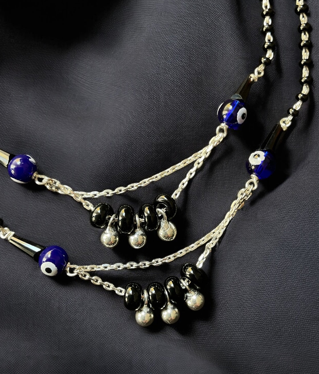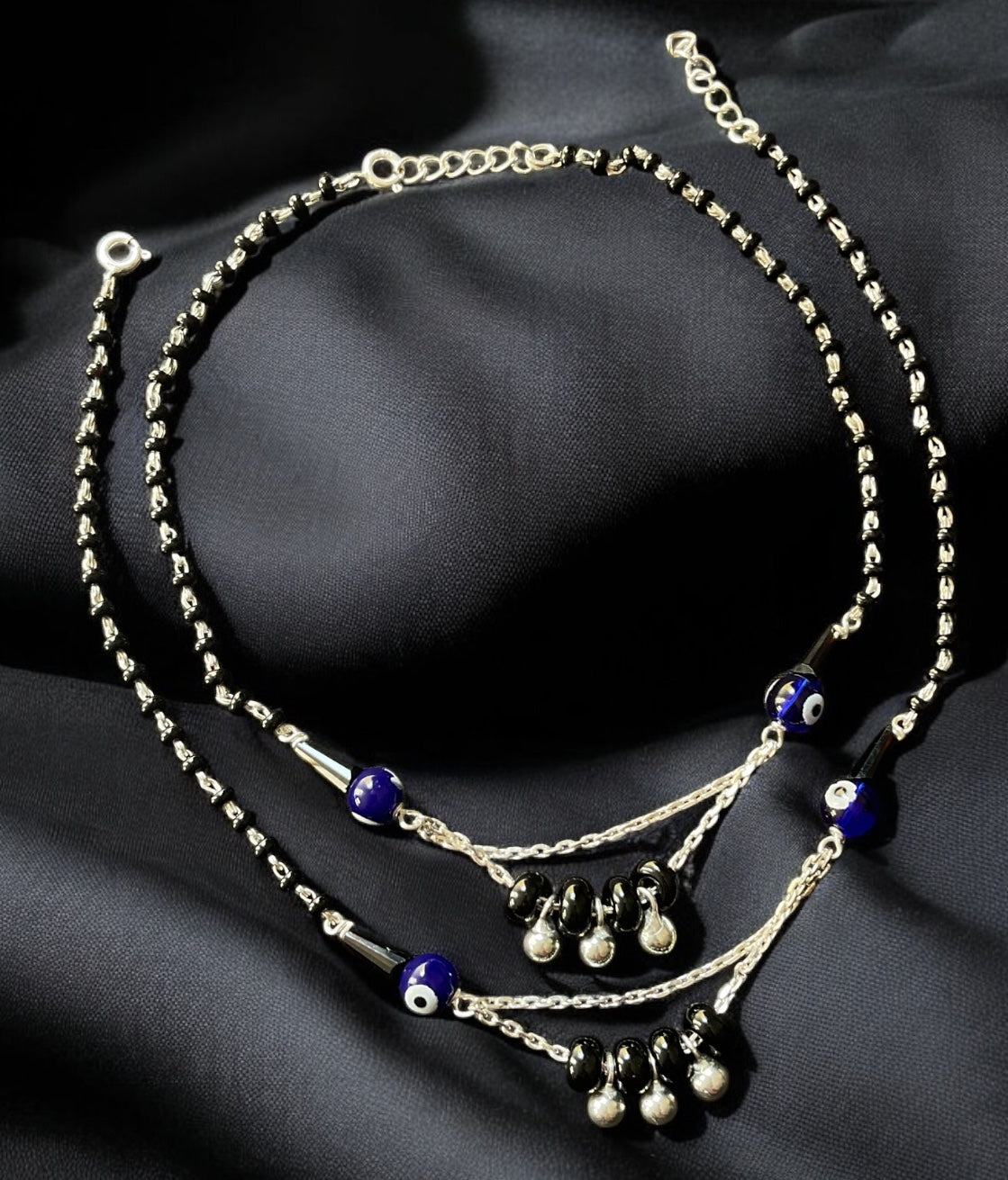 The Aditi Evileye blackbead Silver Anklets-Pair