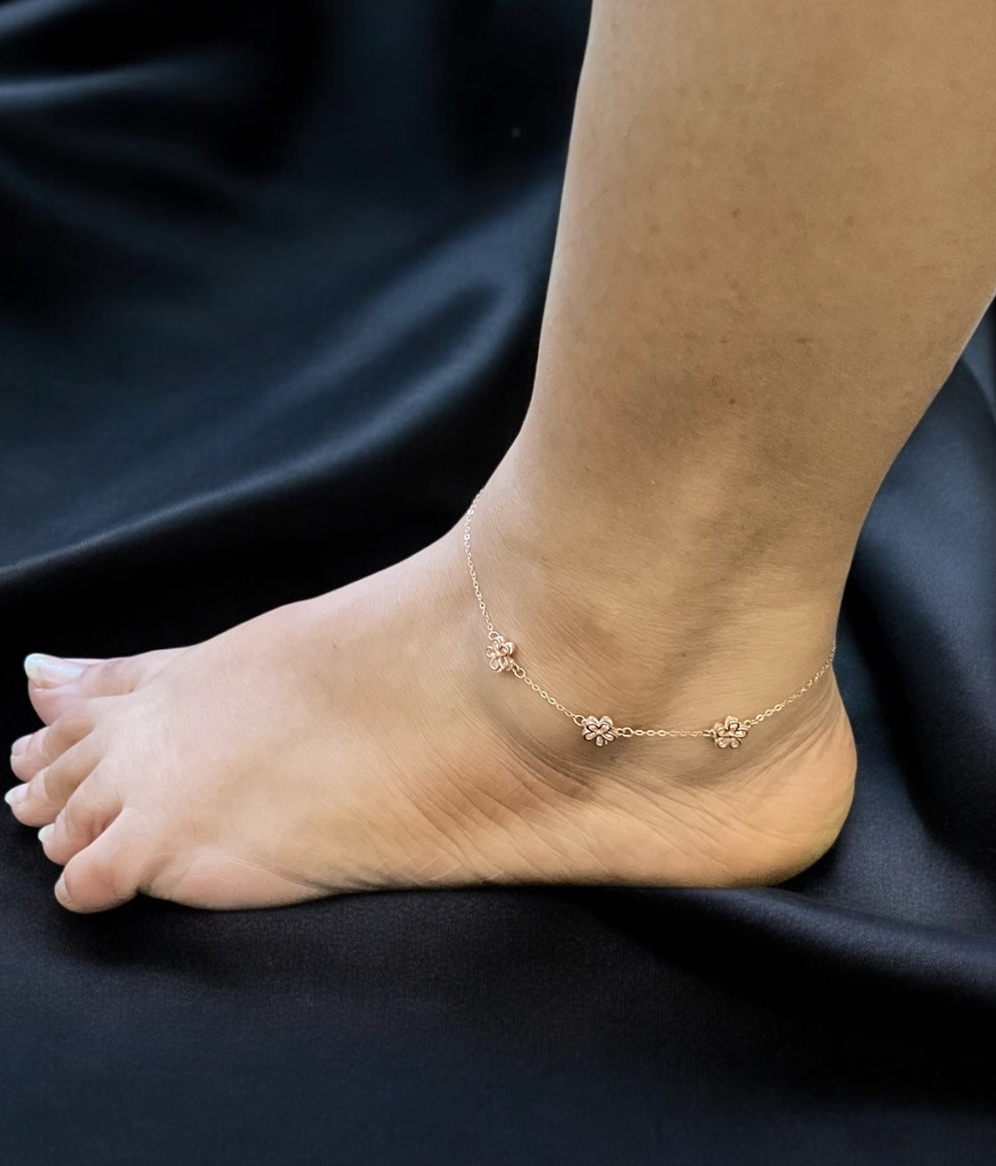 The Blooming Silver Flower Rose-gold Anklets