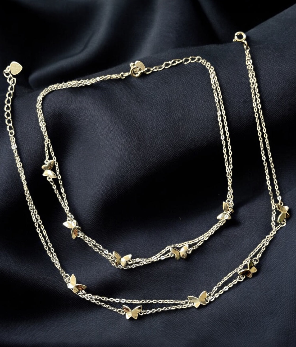 The Break Free Butterfly Layered Silver Anklets