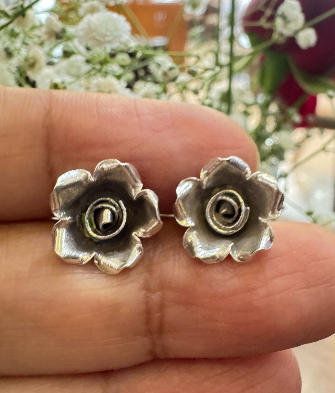 The Damask Rose Silver Flower Earstuds