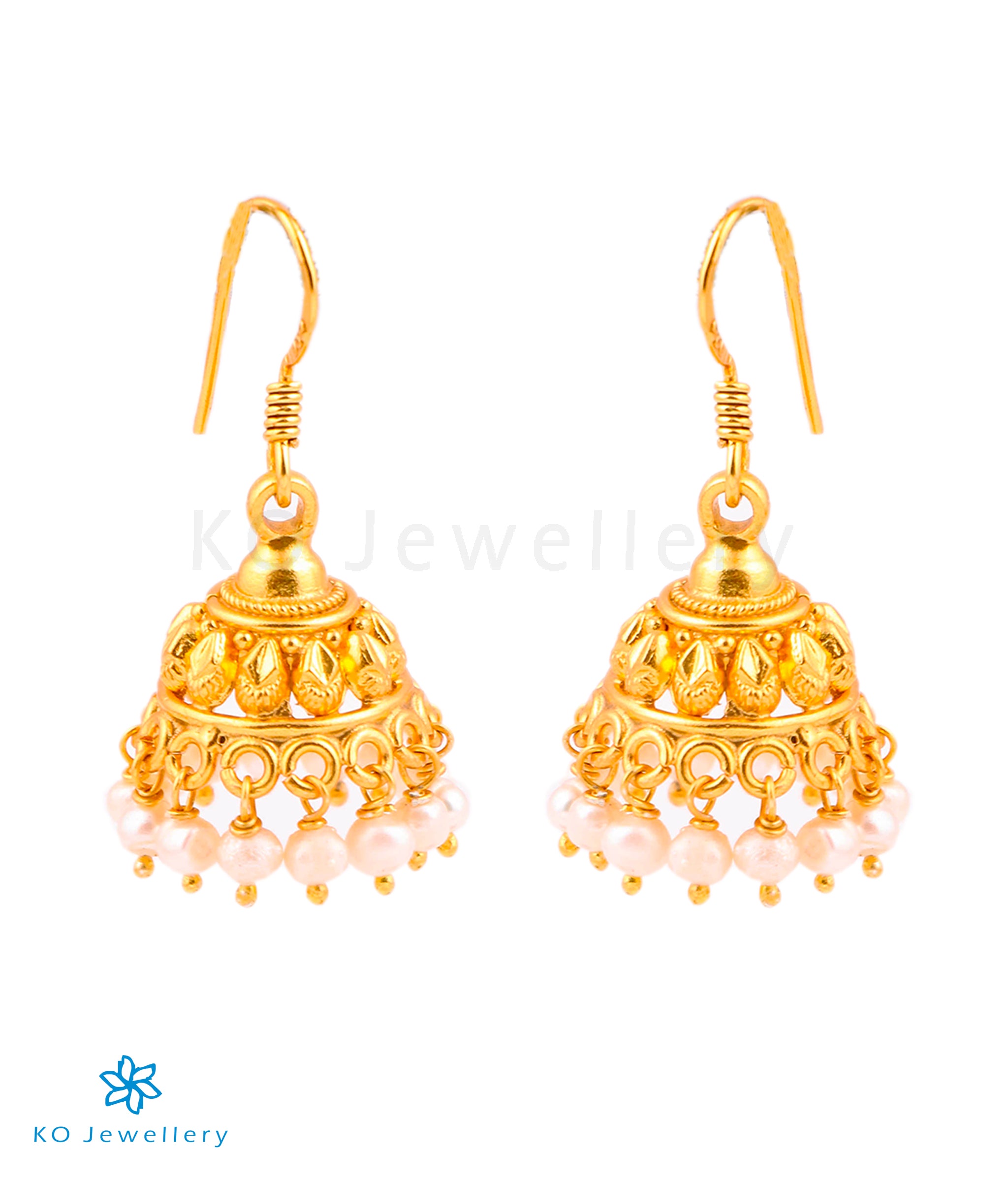 This small jhumka in Sterling Silver (92.5%) with pearls is a very flattering design that will add a sparkle to your outfit . A beautiful mix of tradition and Indian craftsmanship this pair has been gold-dipped to accentuate the design and comes with a hook.