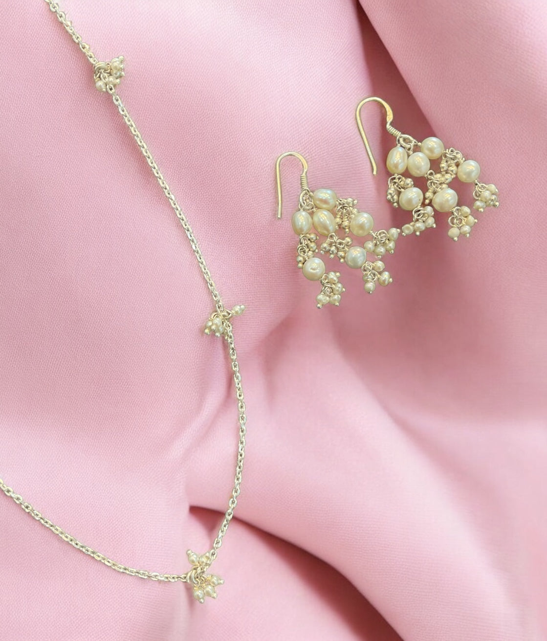 The Suhana Silver Pearl Necklace & Earrings- Buy casual necklaces in 925 Hallmark Sterling Silver - KO Jewellery