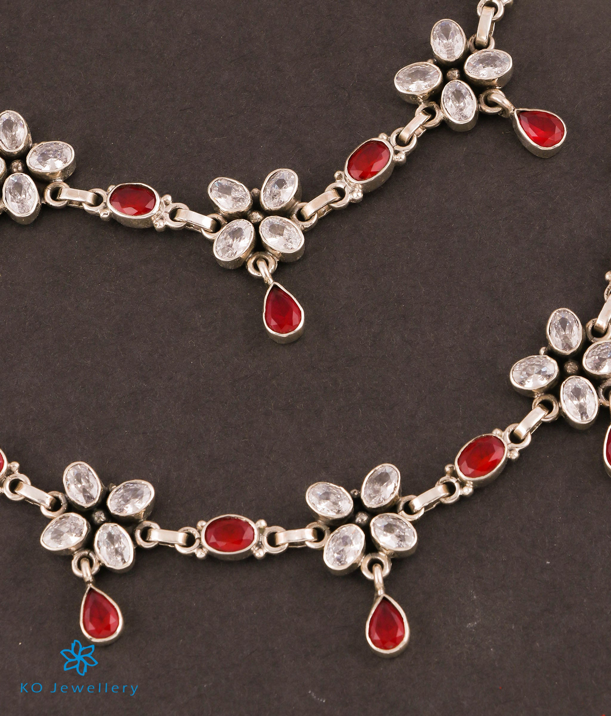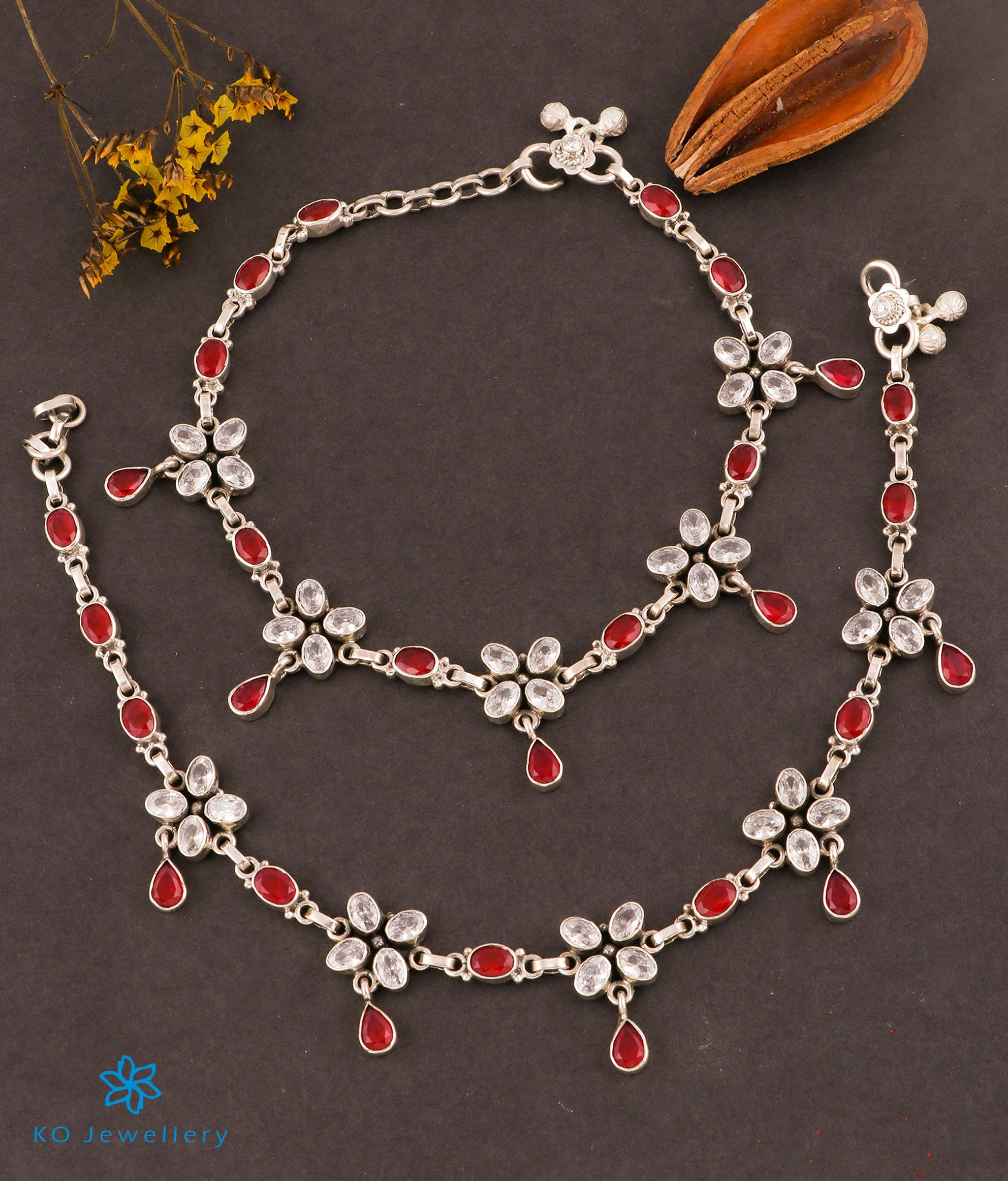 Silver Gemstone Anklets (Red) -Silver Anklet Designs - KO Jewellery