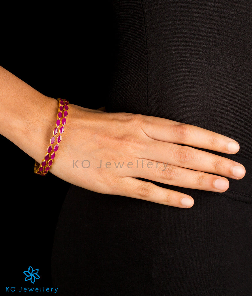 The Avantika Silver Kemp Bangle-Single(Red/Size 2.2/2.4/2.6/2.8)