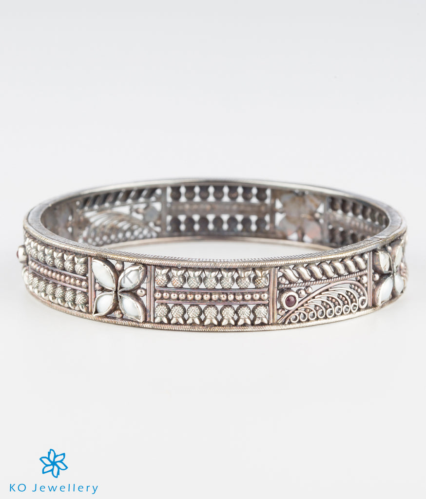 The Mithila Silver Pearl Bangle-Single (Oxidised/Size 2.2/2.4/2.6/2.8)